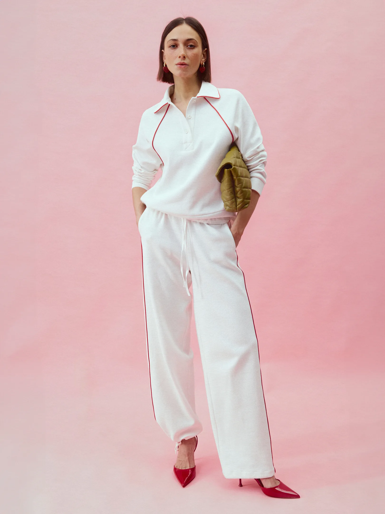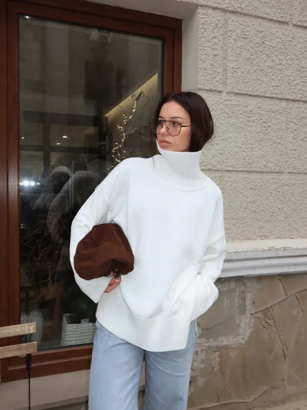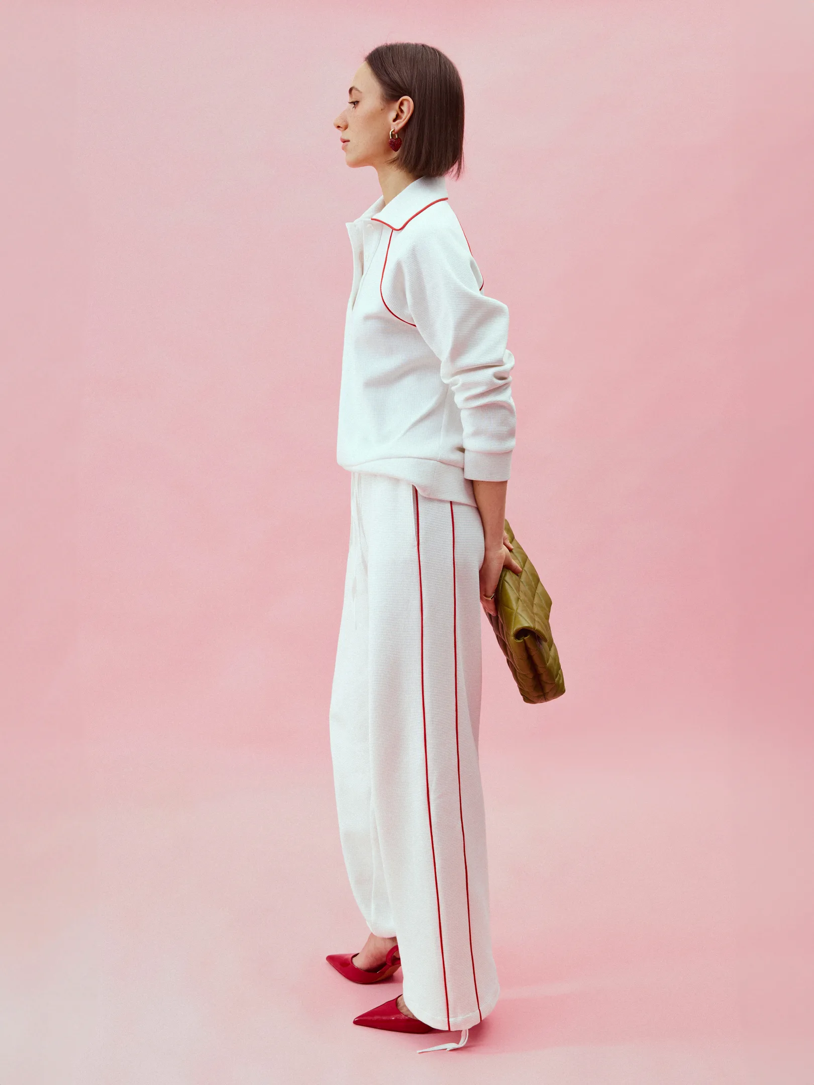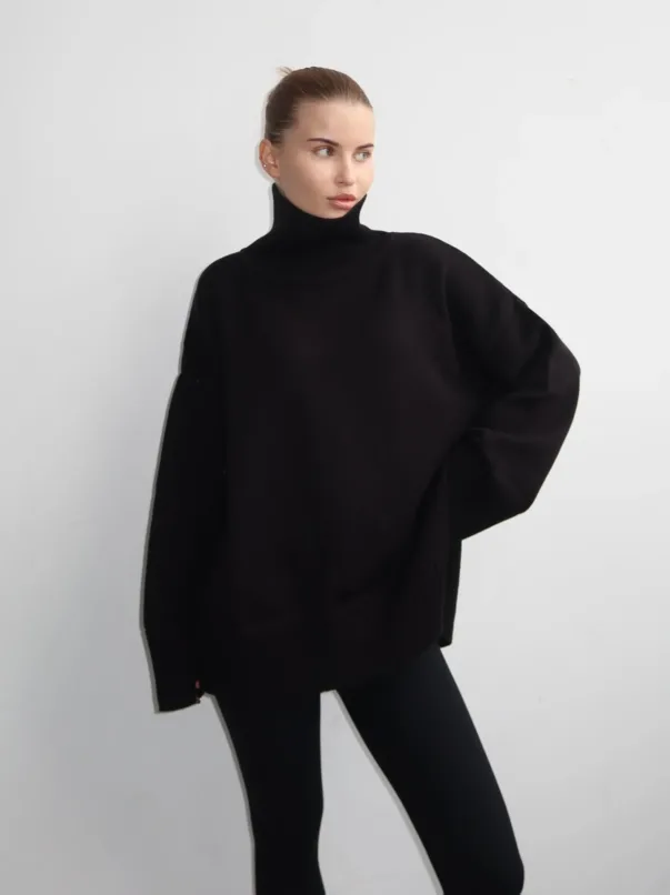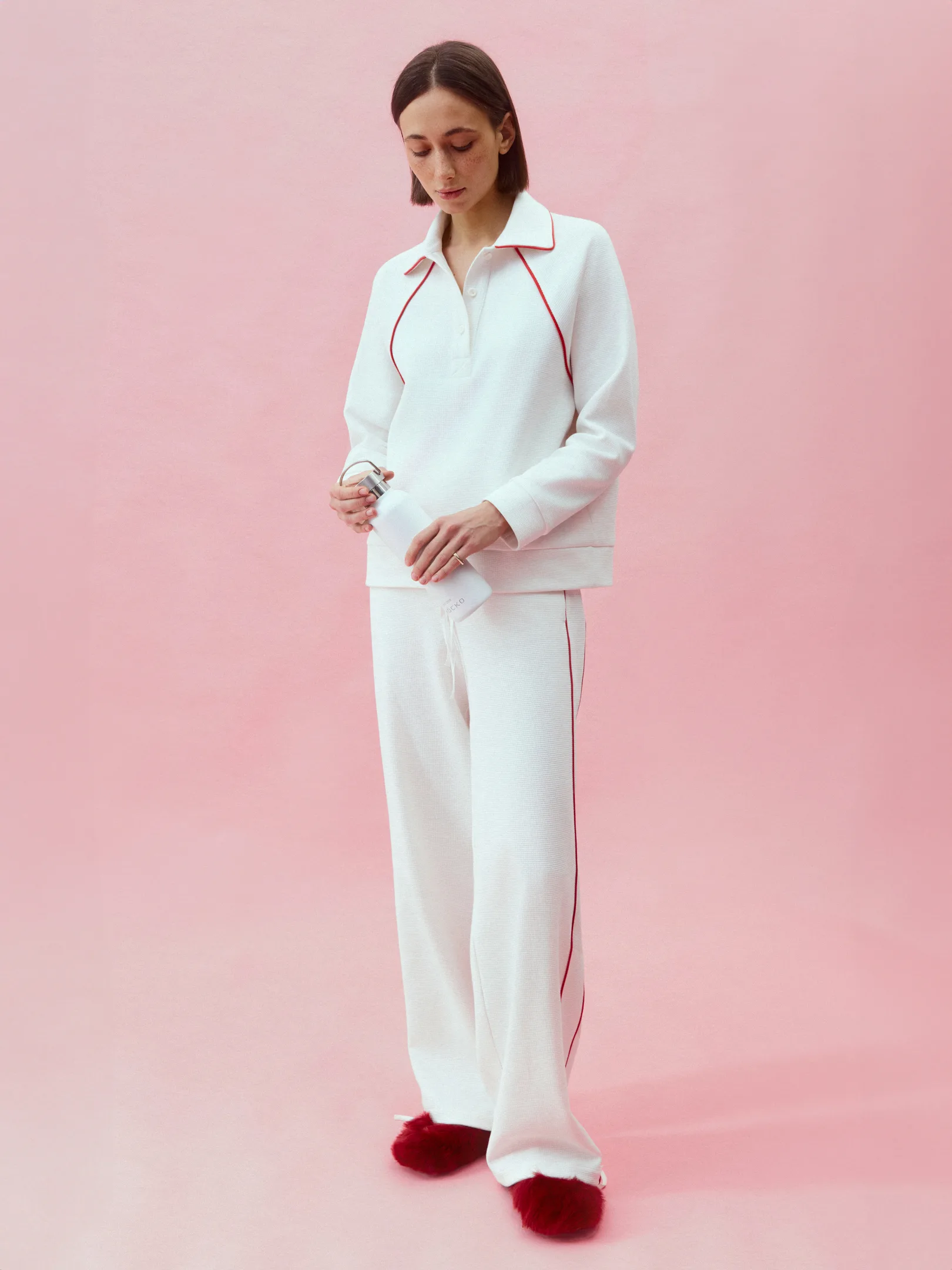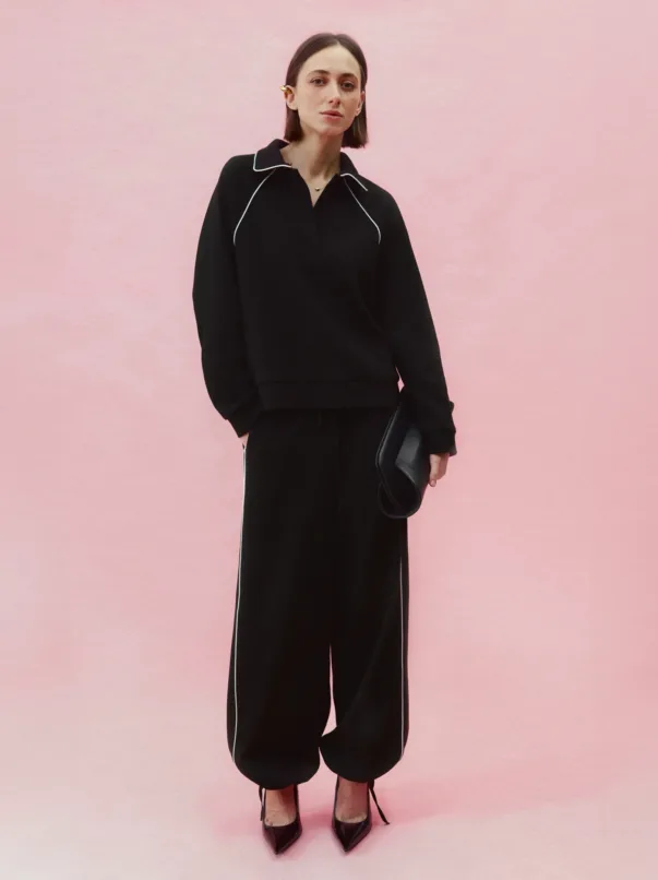 The polo sweatshirt, available in milk and black, is a simple yet stylish piece that offers both comfort and thoughtful design. Made from a soft fabric blend of 97% cotton and 3% lycra, it allows for easy movement while providing a cozy feel. The minimalist design features a polo collar and a fastener, enhancing its overall appeal.