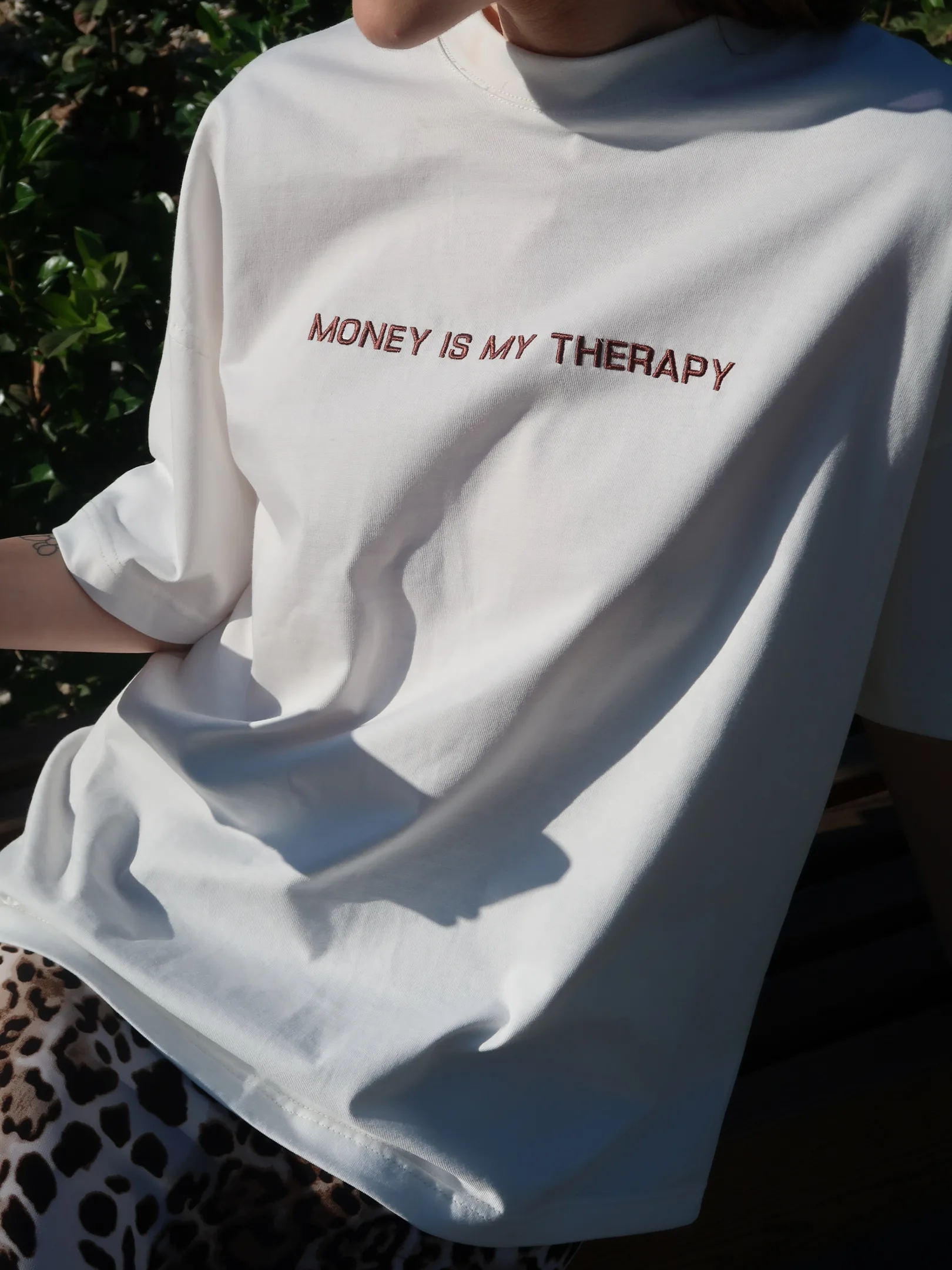 T-shirt Money is my therapy with brown sign