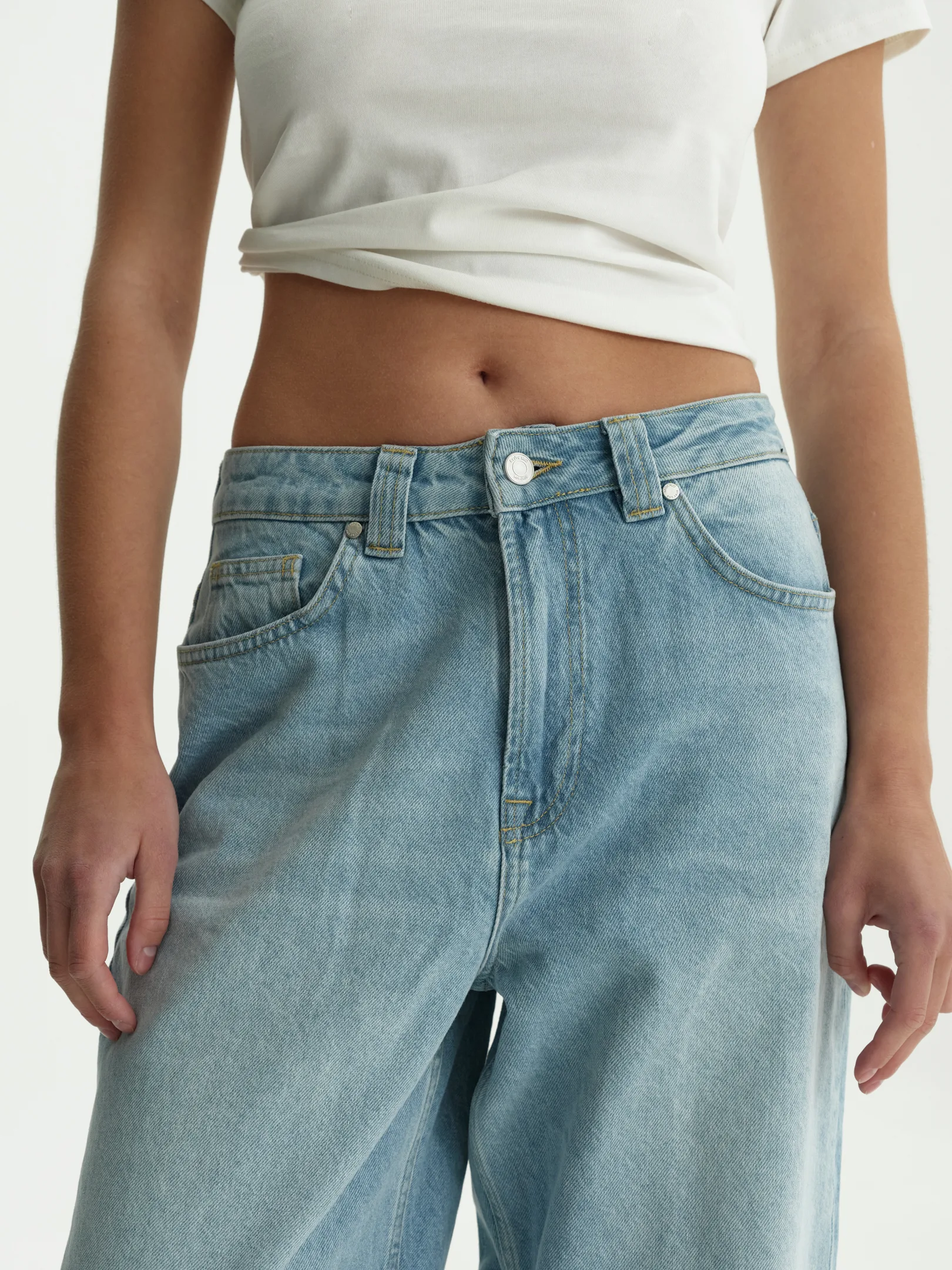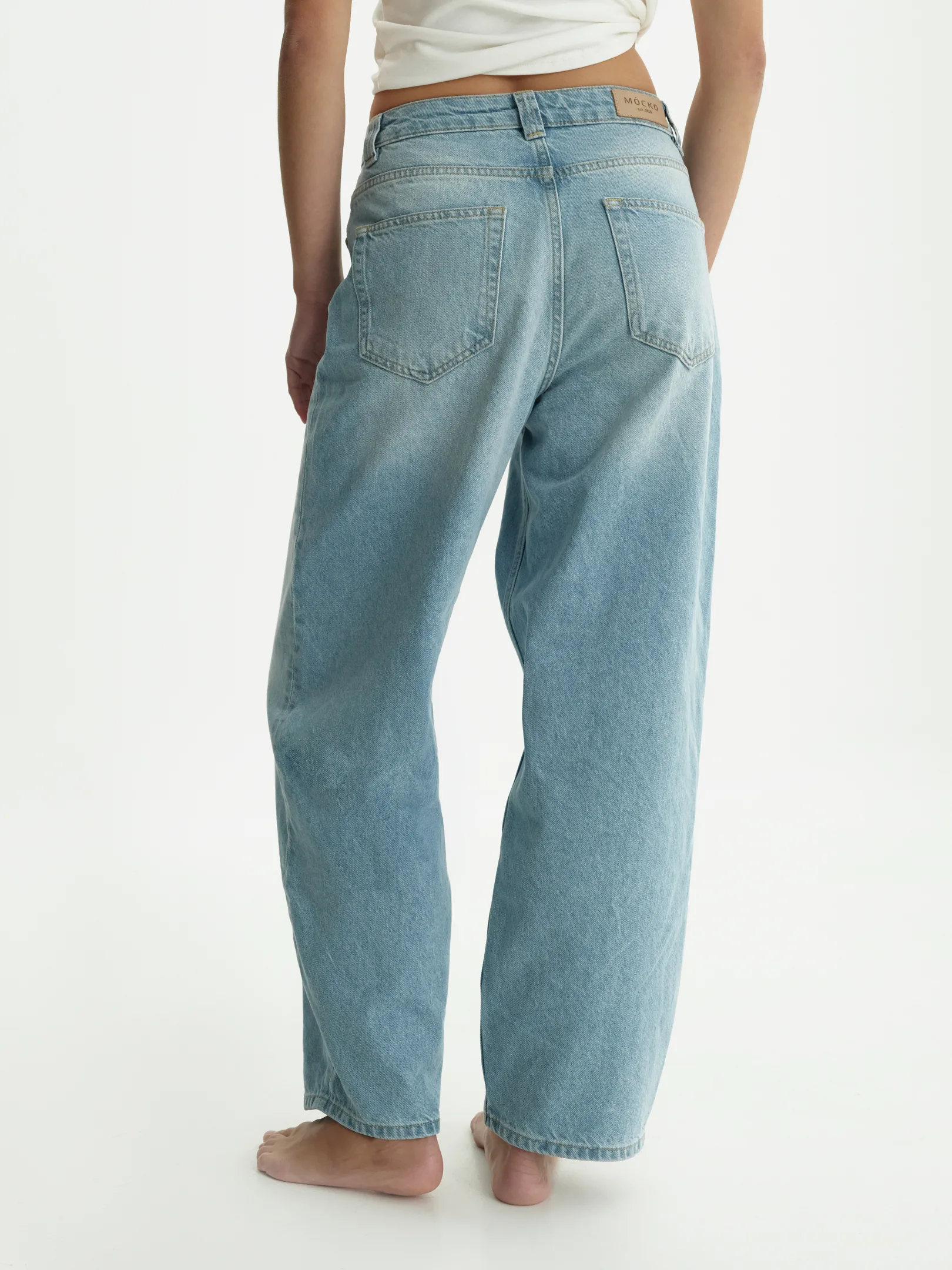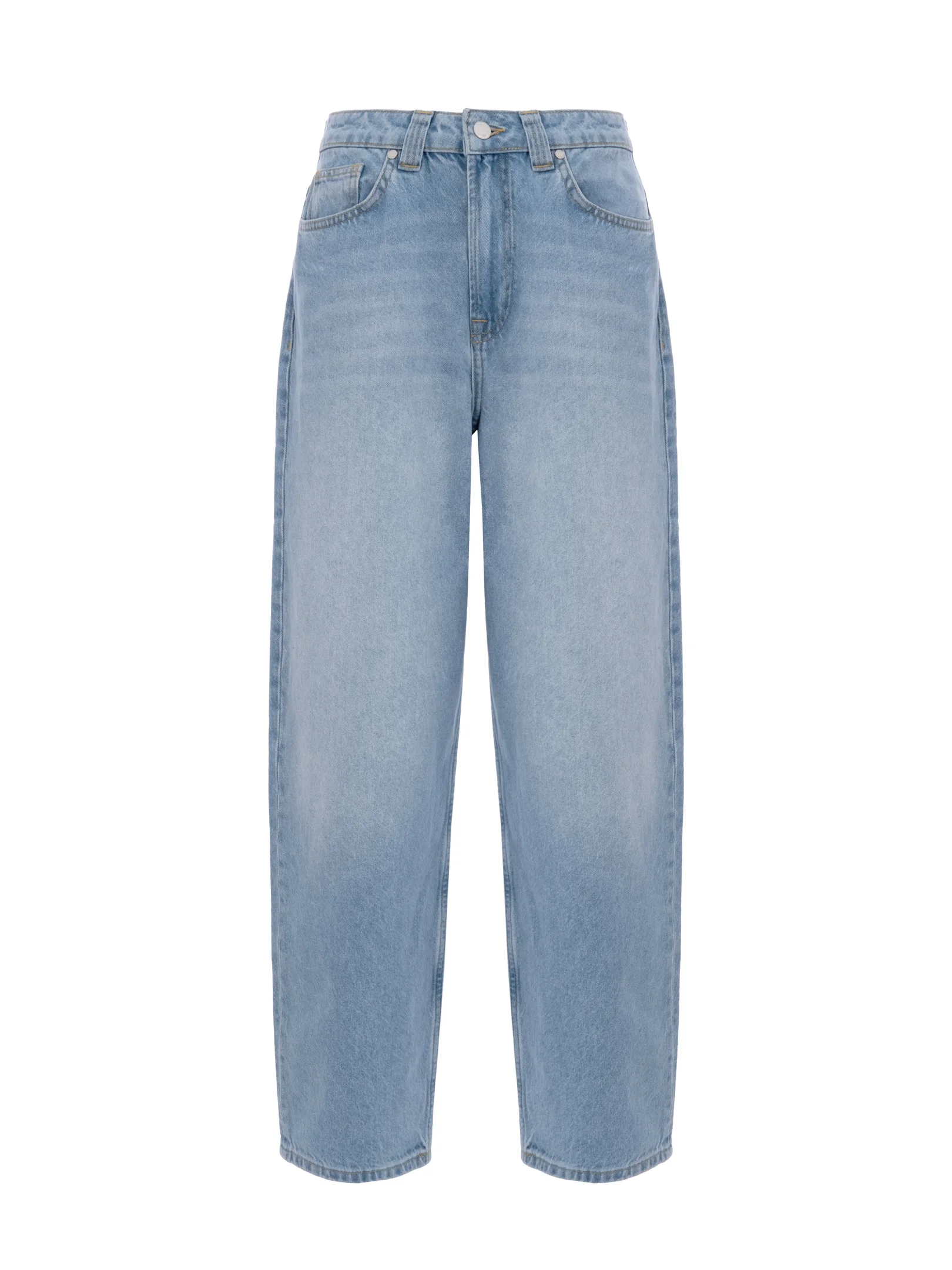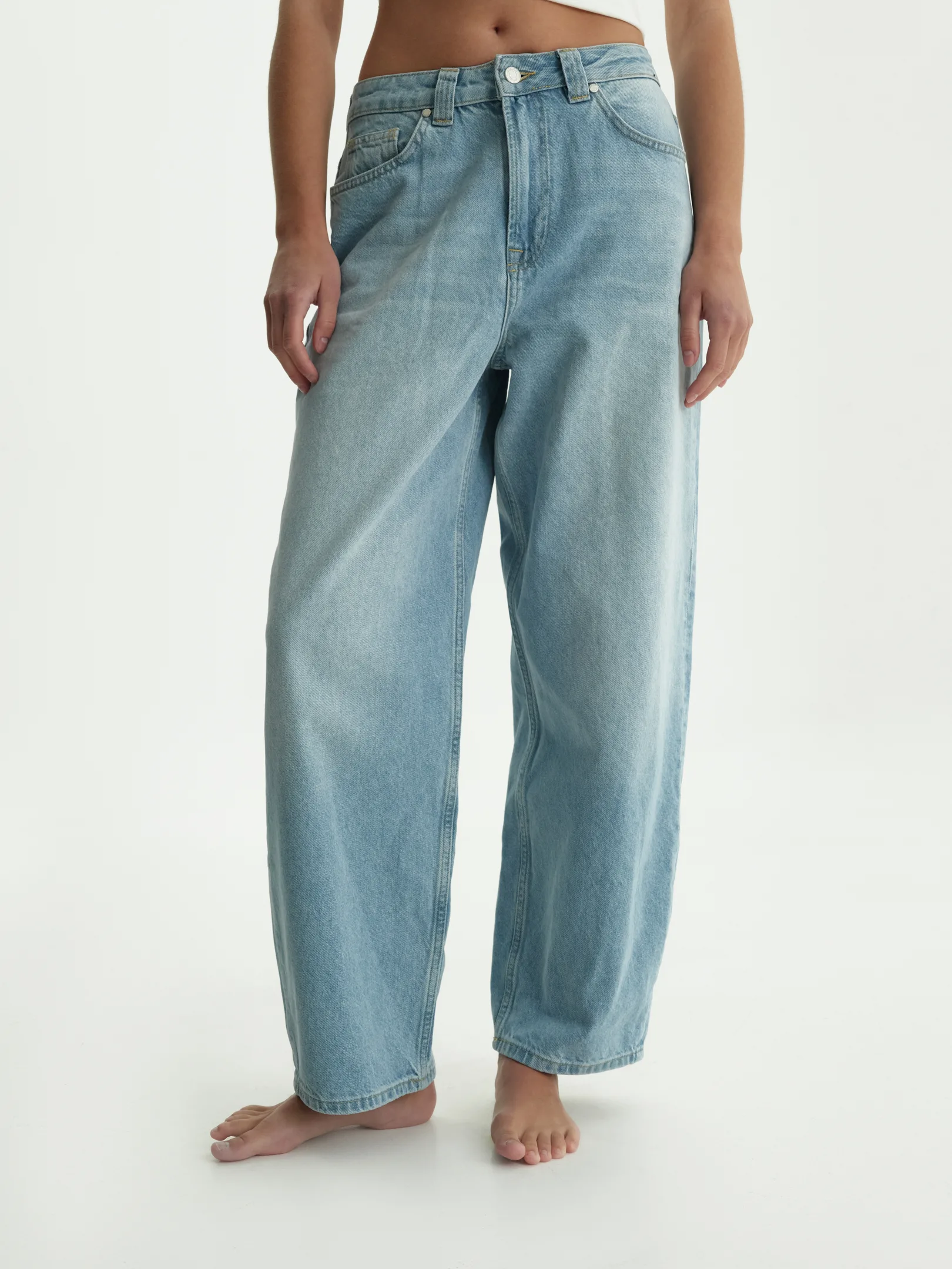 Featuring a clean, light shade of denim and a barrel (banana) cut, they add an effortless touch to your look. With a relaxed fit that slightly narrows at the bottom and the perfect length, these light jeans are both comfortable and appropriate for any occasion.