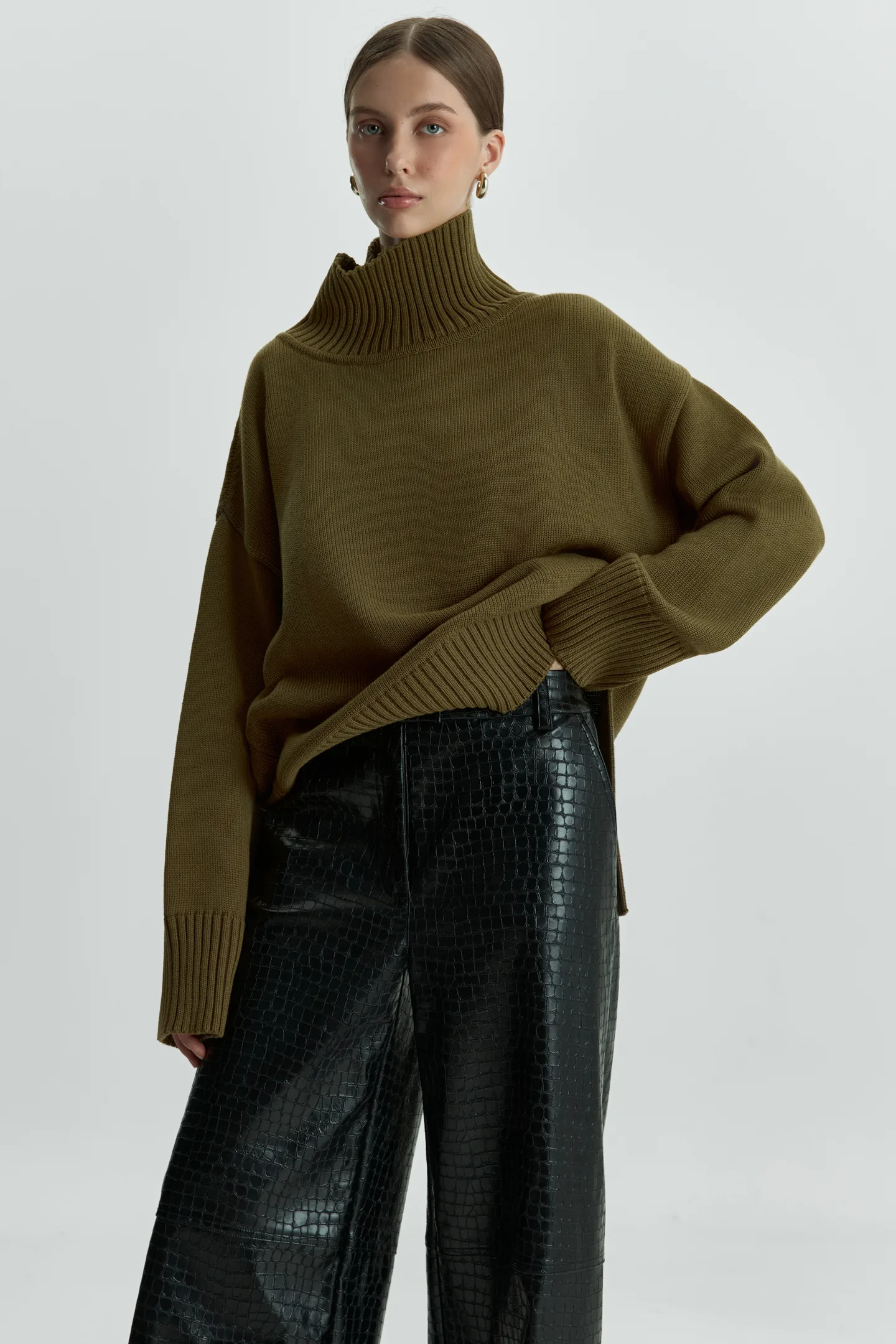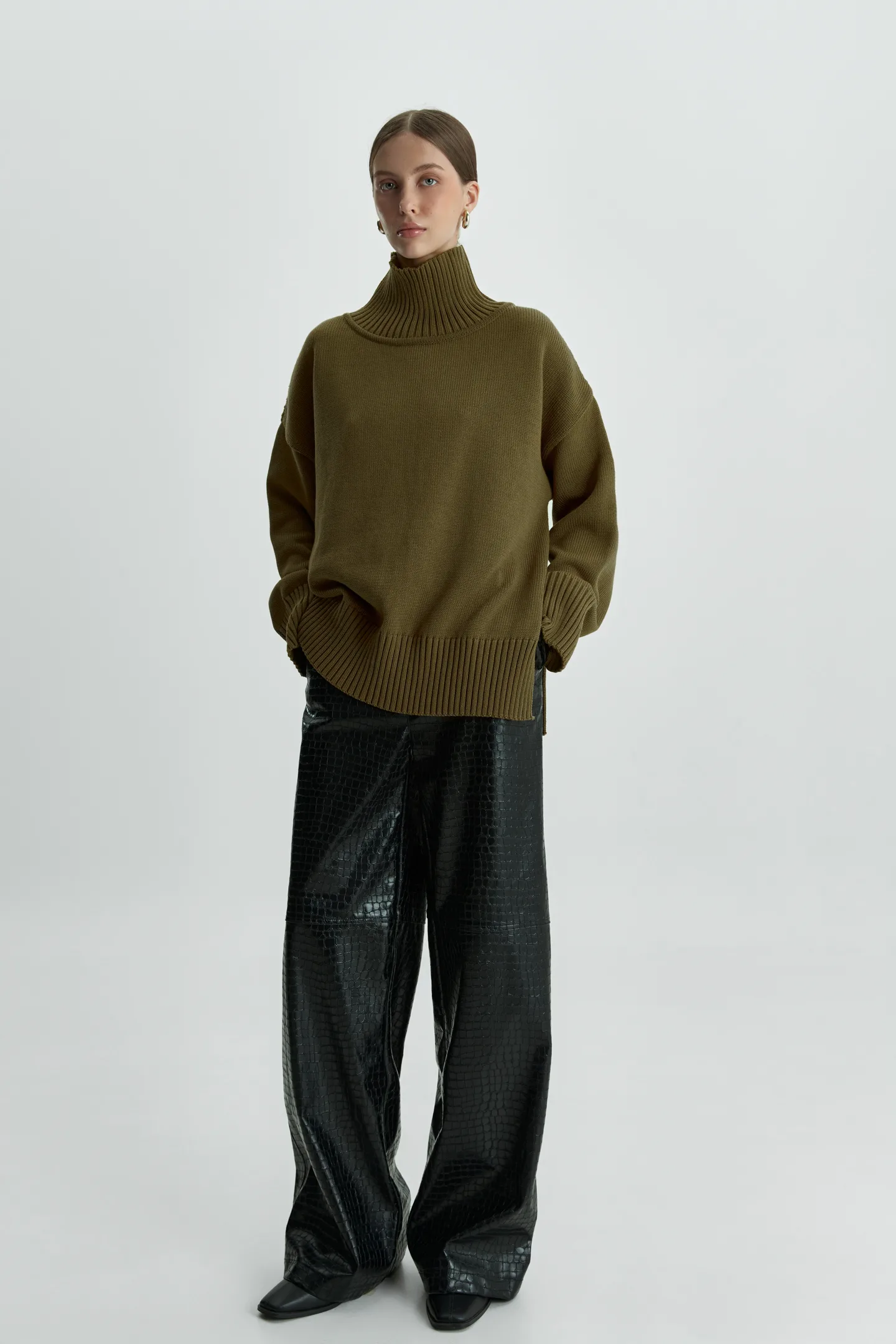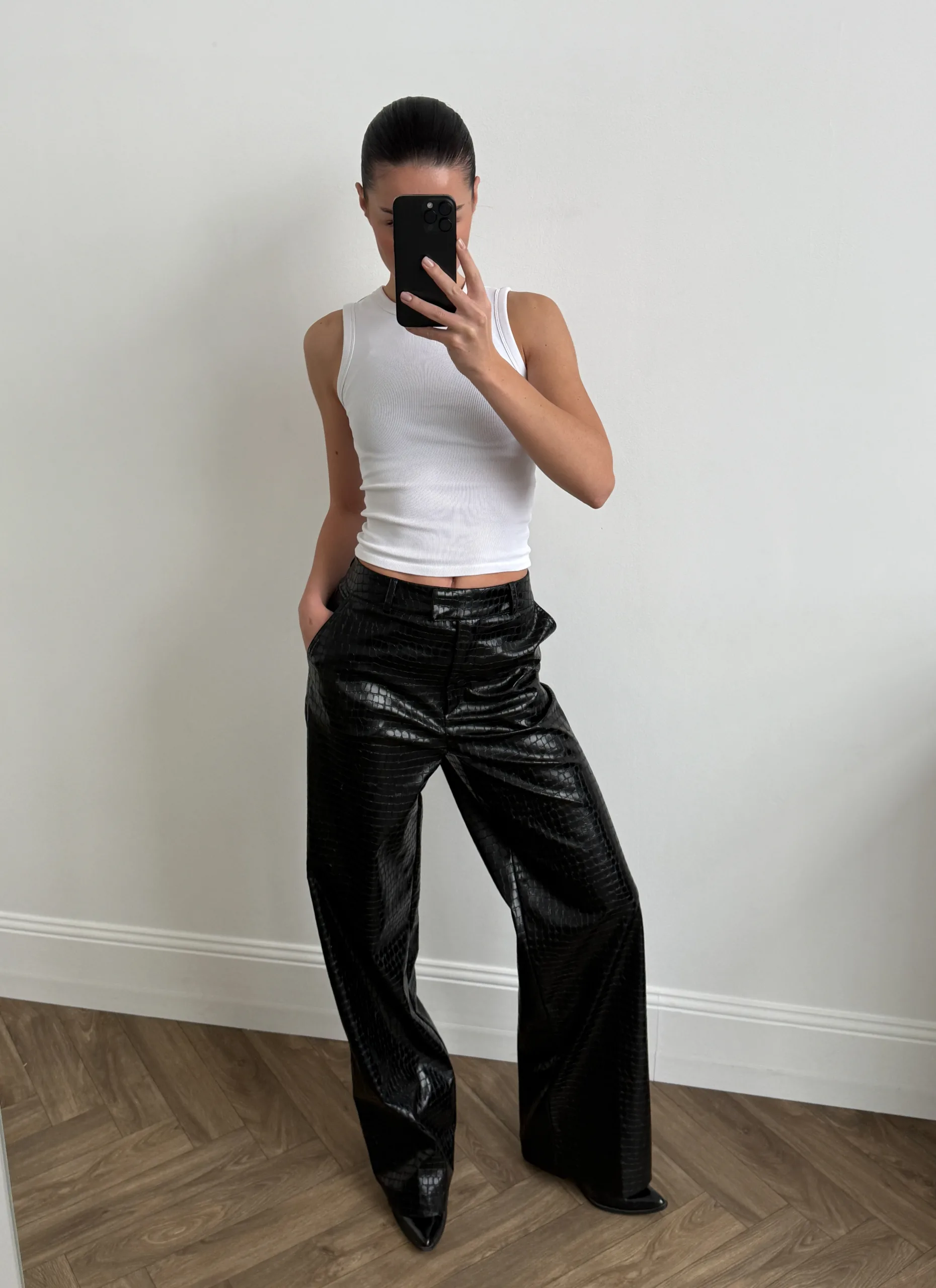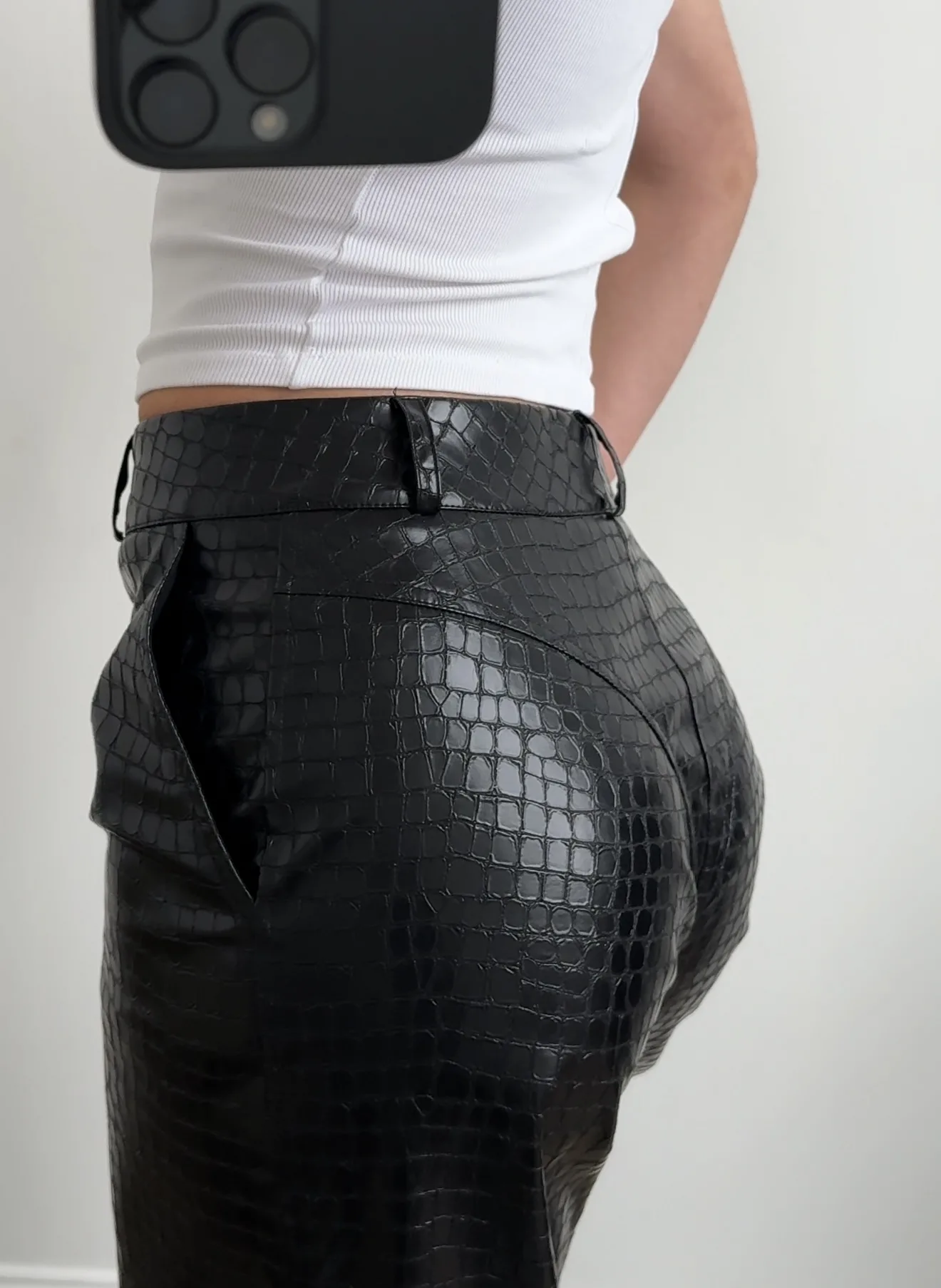 Palazzo is made of premium eco-leather with a crocodile skin pattern.