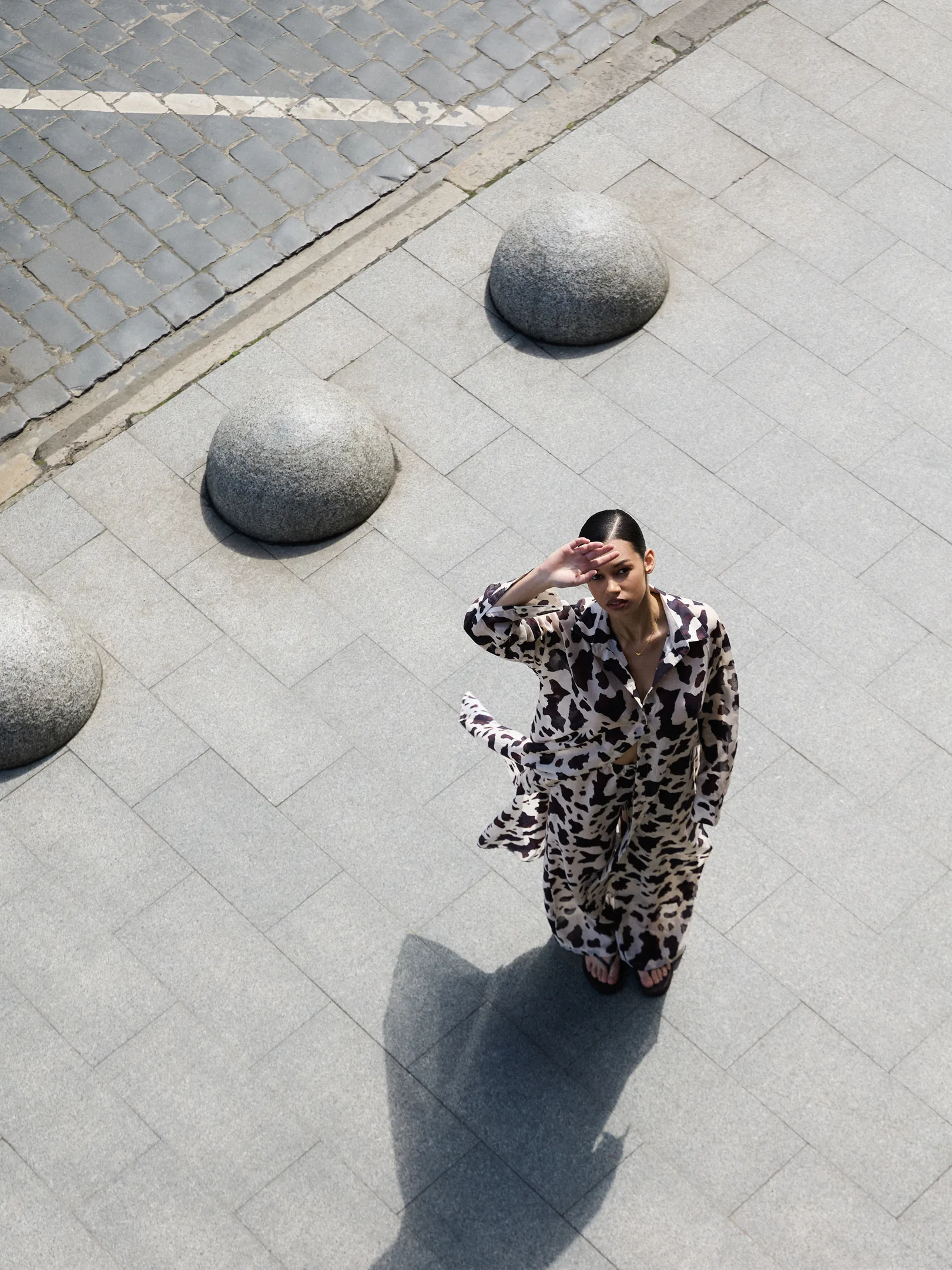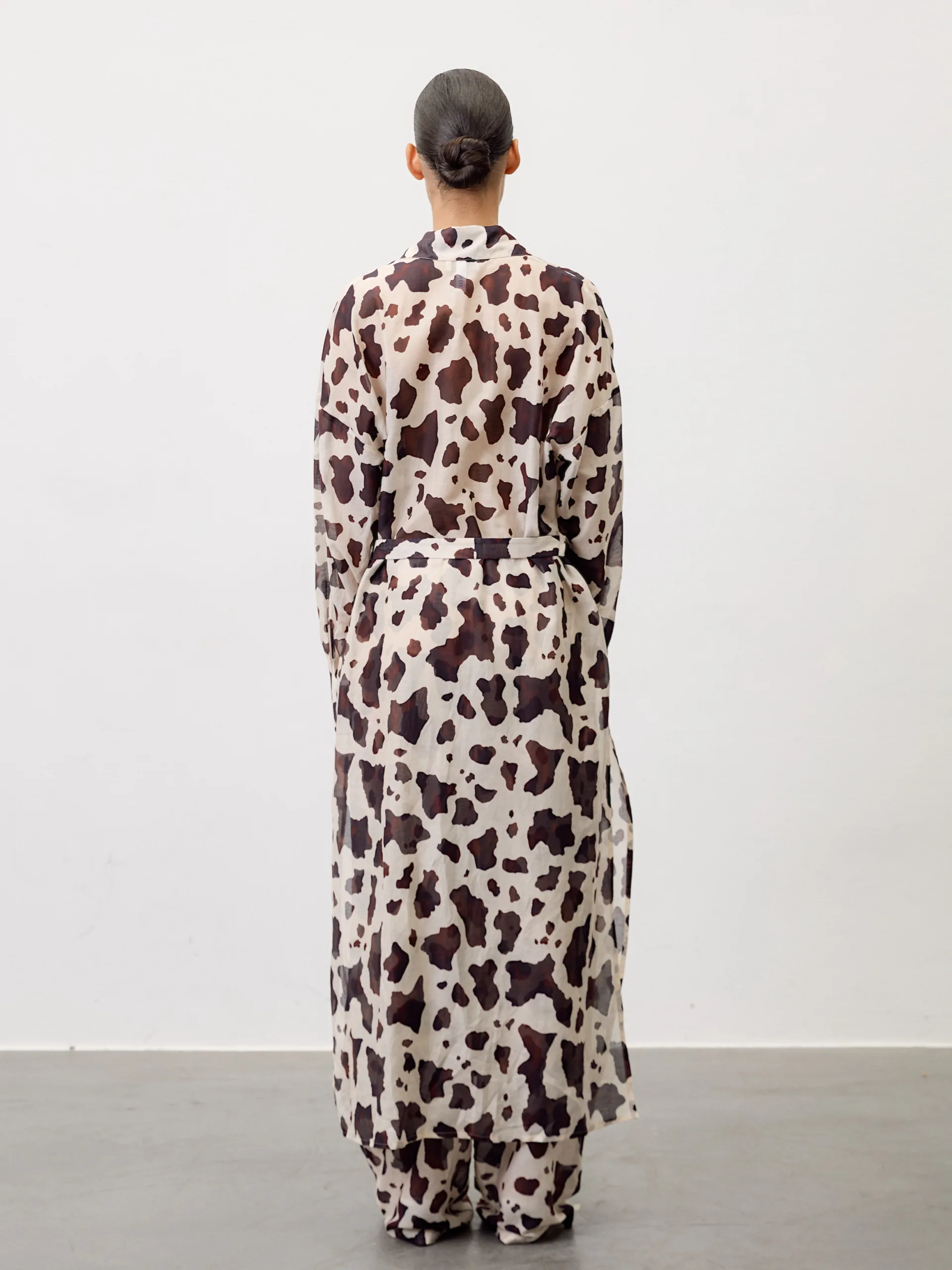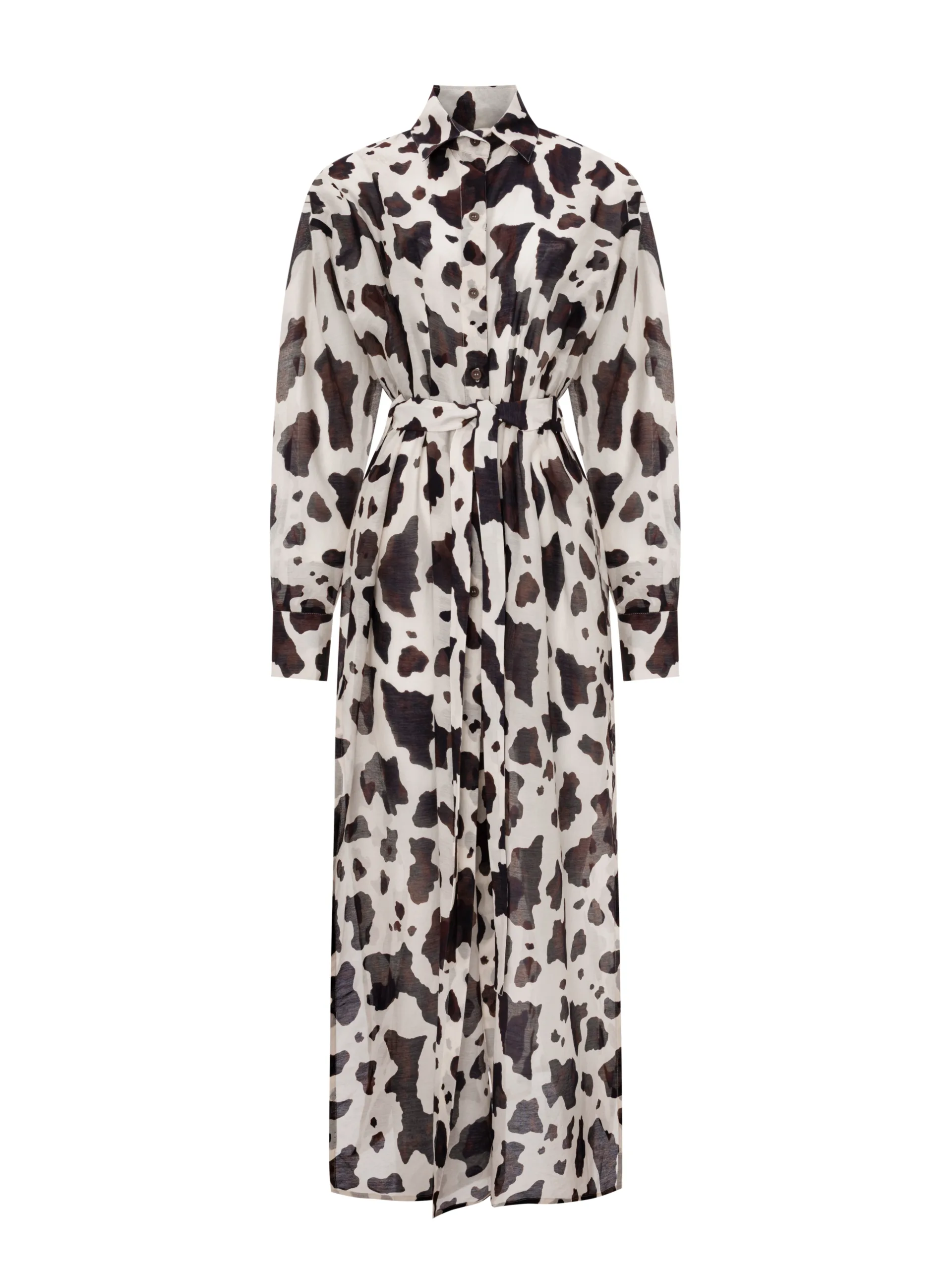 Silk and cotton shirt with an expressive cow print – light, weightless, pleasant to the body. The flying Silk and cotton shirt featuring an expressive cow print – light, weightless, andt the skin. The flowing fabric moves beautifully pleasant agains with each step.ized cut creates a relaxed silhouette and gives a sense of space. You can wear i The loose overst as a standalone piece or as part of a complete outfit with pants. Ideal for both beach looks over a swimsuit and hot days in the city when you desire something light yet striking.fabric moves beautifully during the gait. The loose oversize cut creates a relaxed silhouette and gives a feeling of space. You can wear it as an independent thing, or wear it as a full set with pants. Ideal for both beach looks over a swimsuit and for hot days in the city when you want something light but expressive.