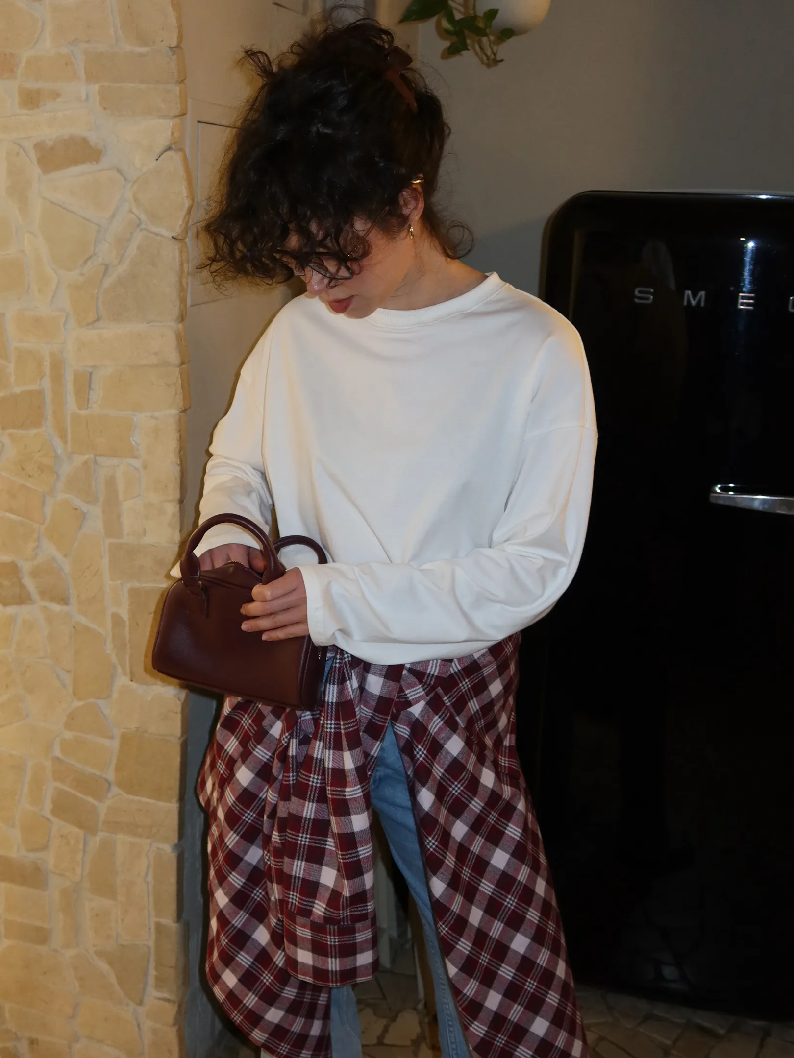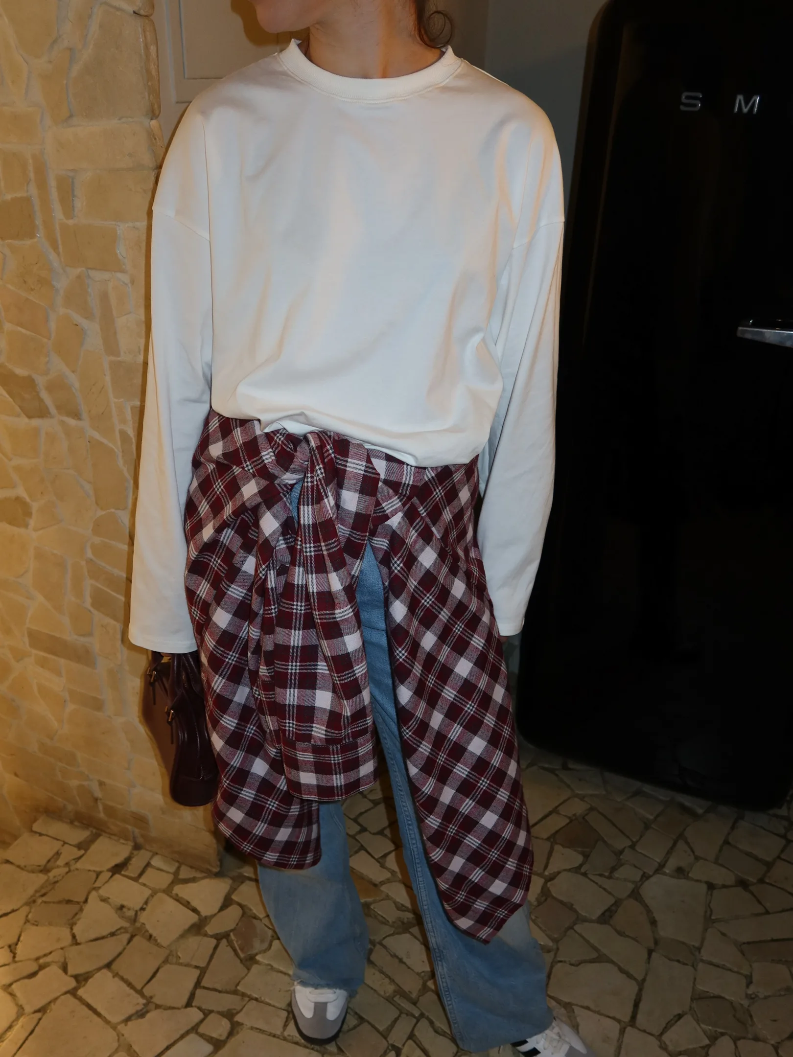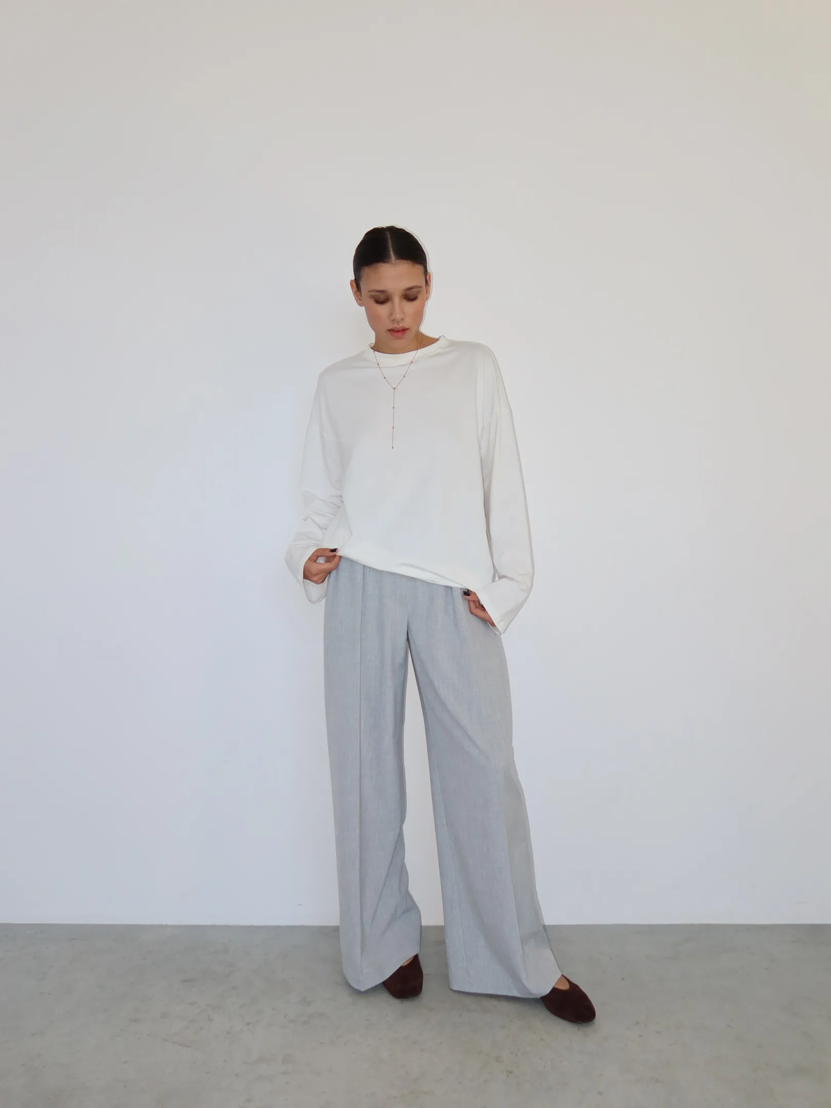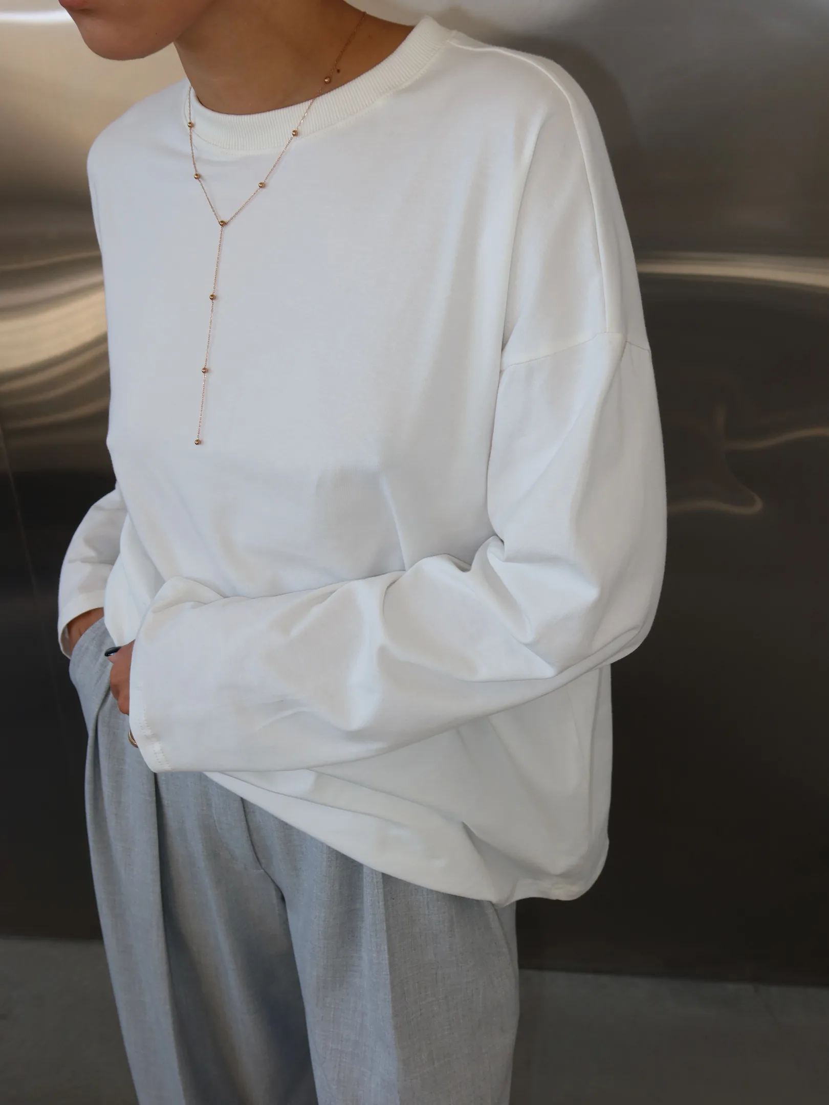 A comfortable basic long-sleeved top that may serve as a base for many outfits.