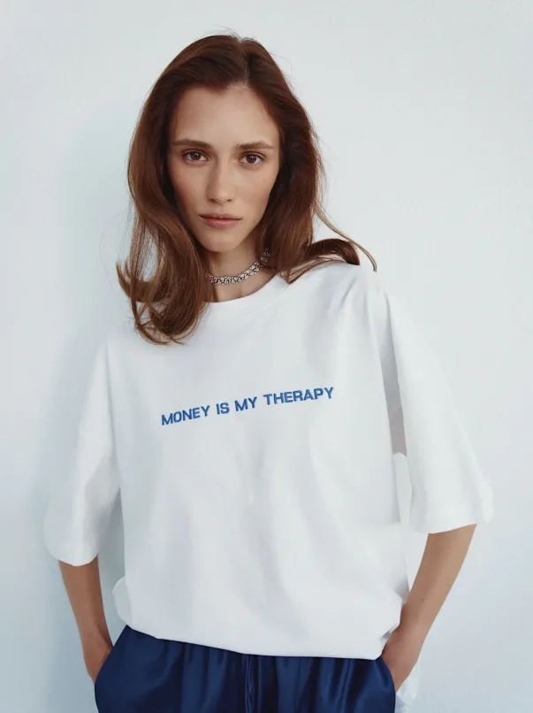 Out of stock Обрати розмір Цей товар має кілька варіантів. Параметри можна вибрати на сторінці товаруФутболка Money is my therapy blue