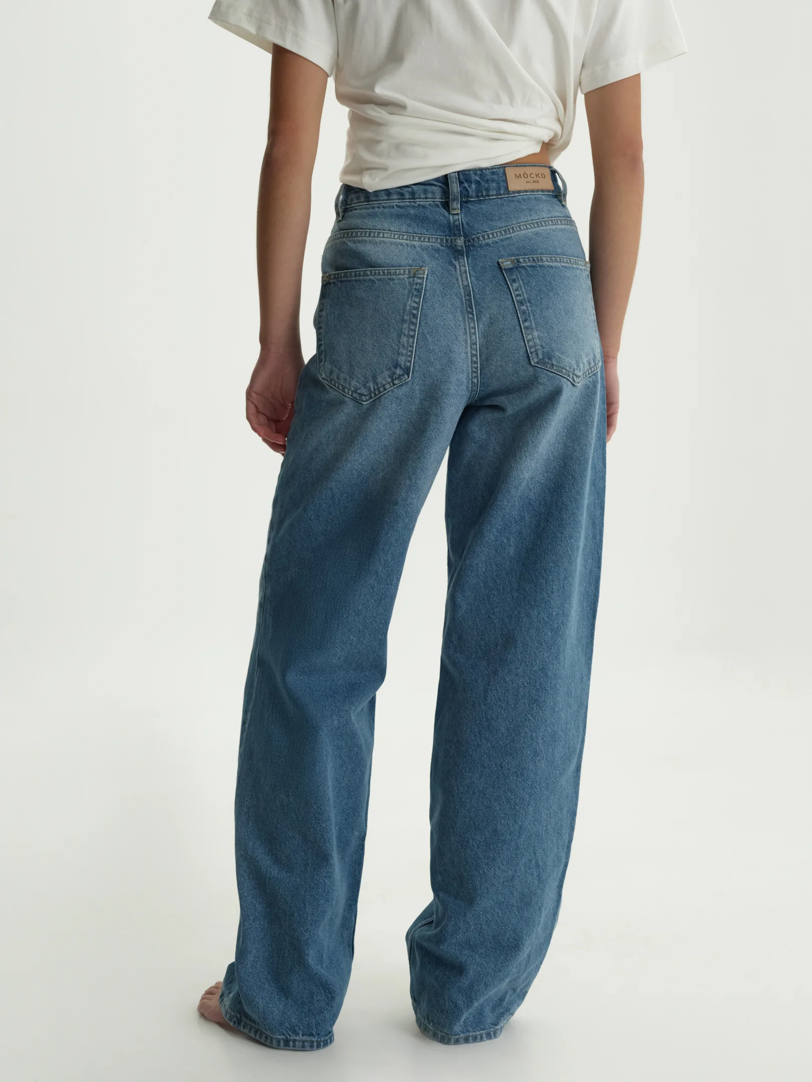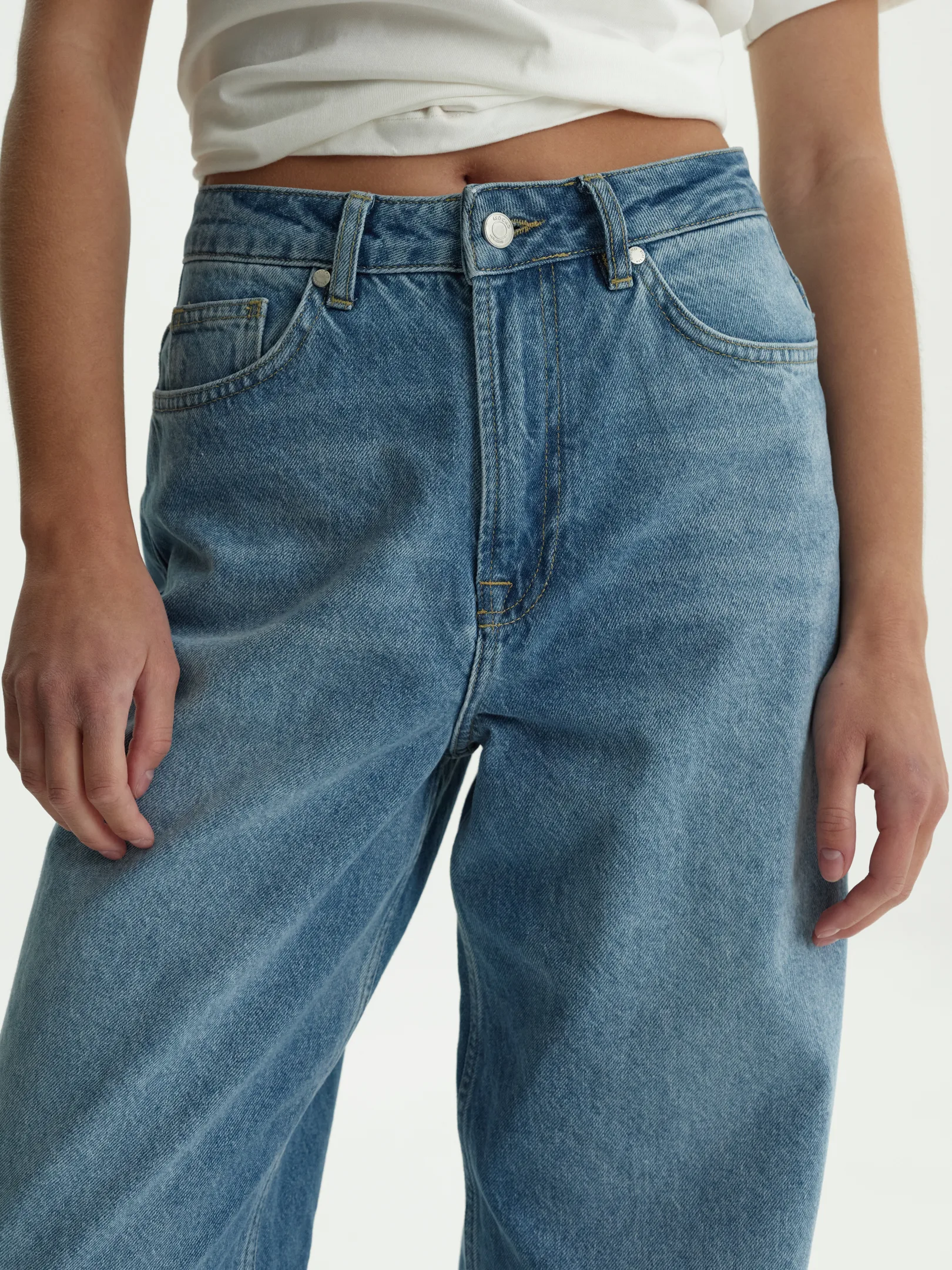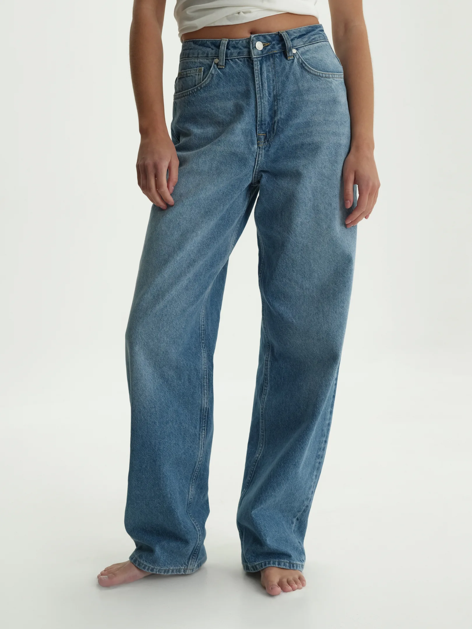 Той самий культовий відтінок джинсів, який завжди доречний. Не надто темні, не надто світлі — ідеально збалансований класичний відтінок. Вільний крій, розслаблений силует і універсальність, яка зробить їх улюбленою парою на роки.