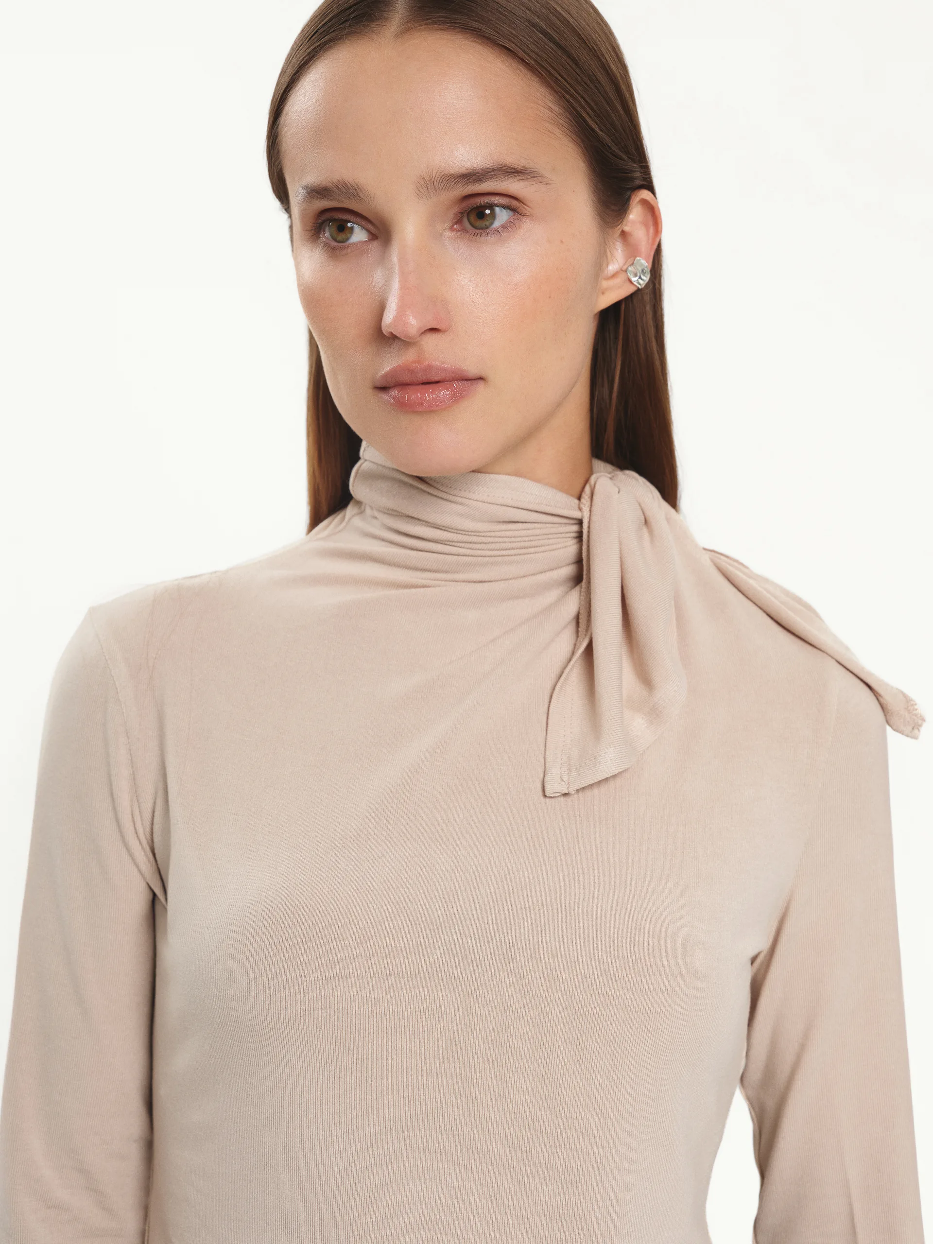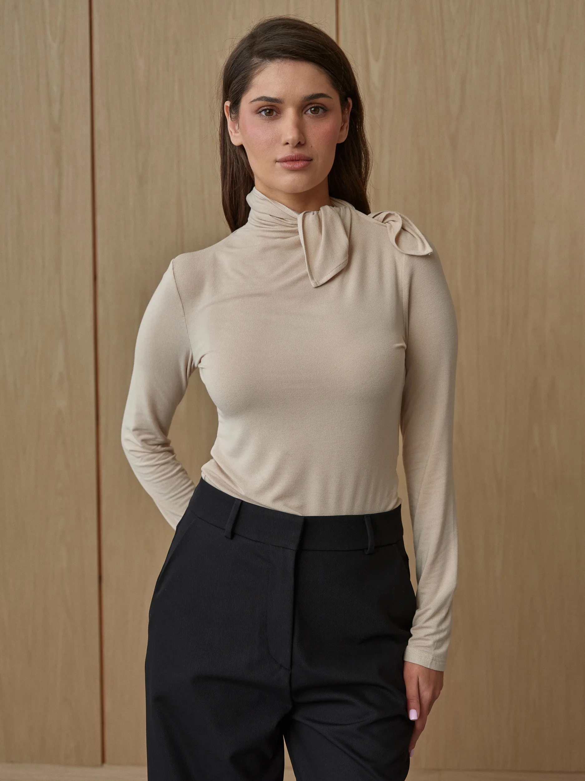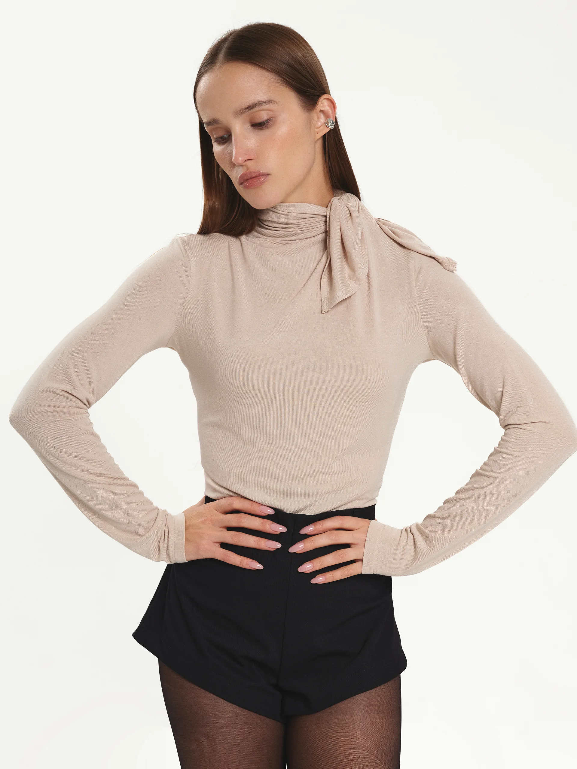Базова річ із делікатним акцентом. М’яко повторює лінії тіла, створюючи елегантну драпіровку у зоні декольте. Підходить як для повсякденних образів із джинсами чи штанами, так і під жакети чи пальта, додаючи образу виразності без надмірностей.