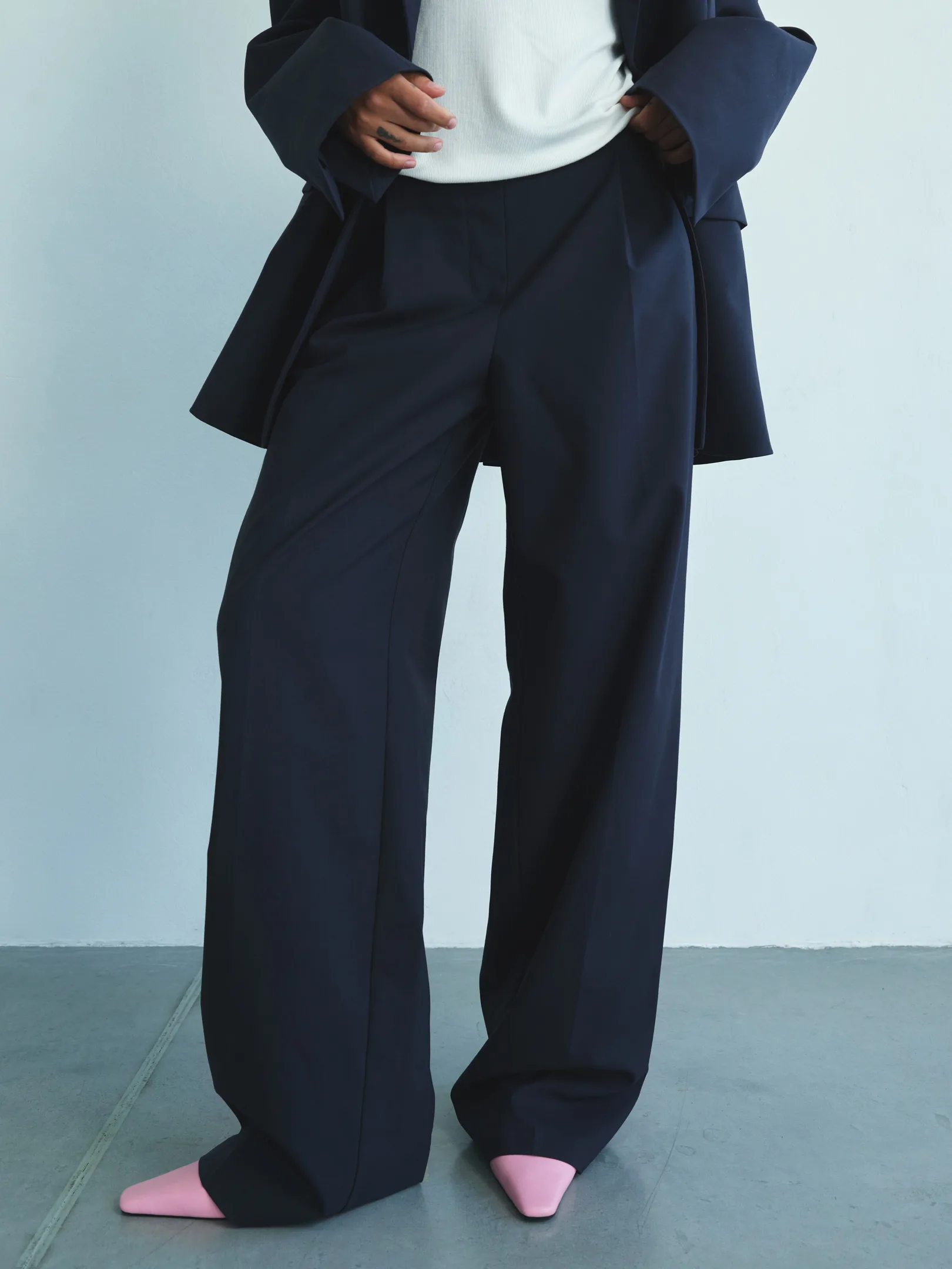 Виконані з тканини з додаванням вовни, вони добре тримають форму й мають насичений глибокий синій колір. Це універсальна річ, яка легко поєднується з різними елементами гардеробу — від класичних сорочок до простих базових топів, а також чудово виглядає у комплекті з жакетом Monica, утворюючи цілісний костюм із багатьма можливостями для стилізації.
