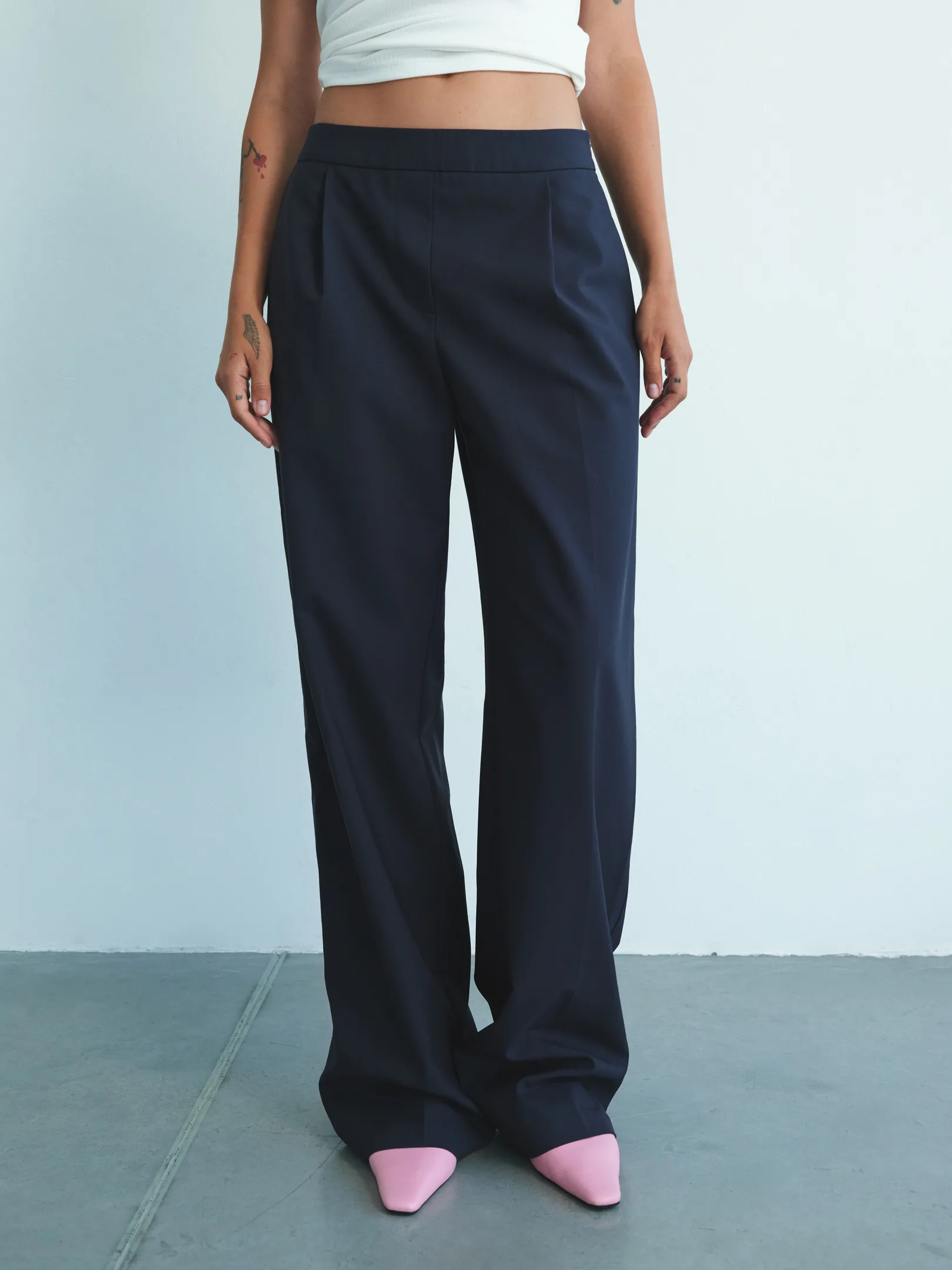 Базові штани, що переосмислюють класику. Прямий силует із легким відчуттям розслабленості робить їх невимушеними й комфортними. Посадка трохи нижча, ніж у традиційних моделей, завдяки чому вони виглядають по-новому та дарують більше свободи руху.