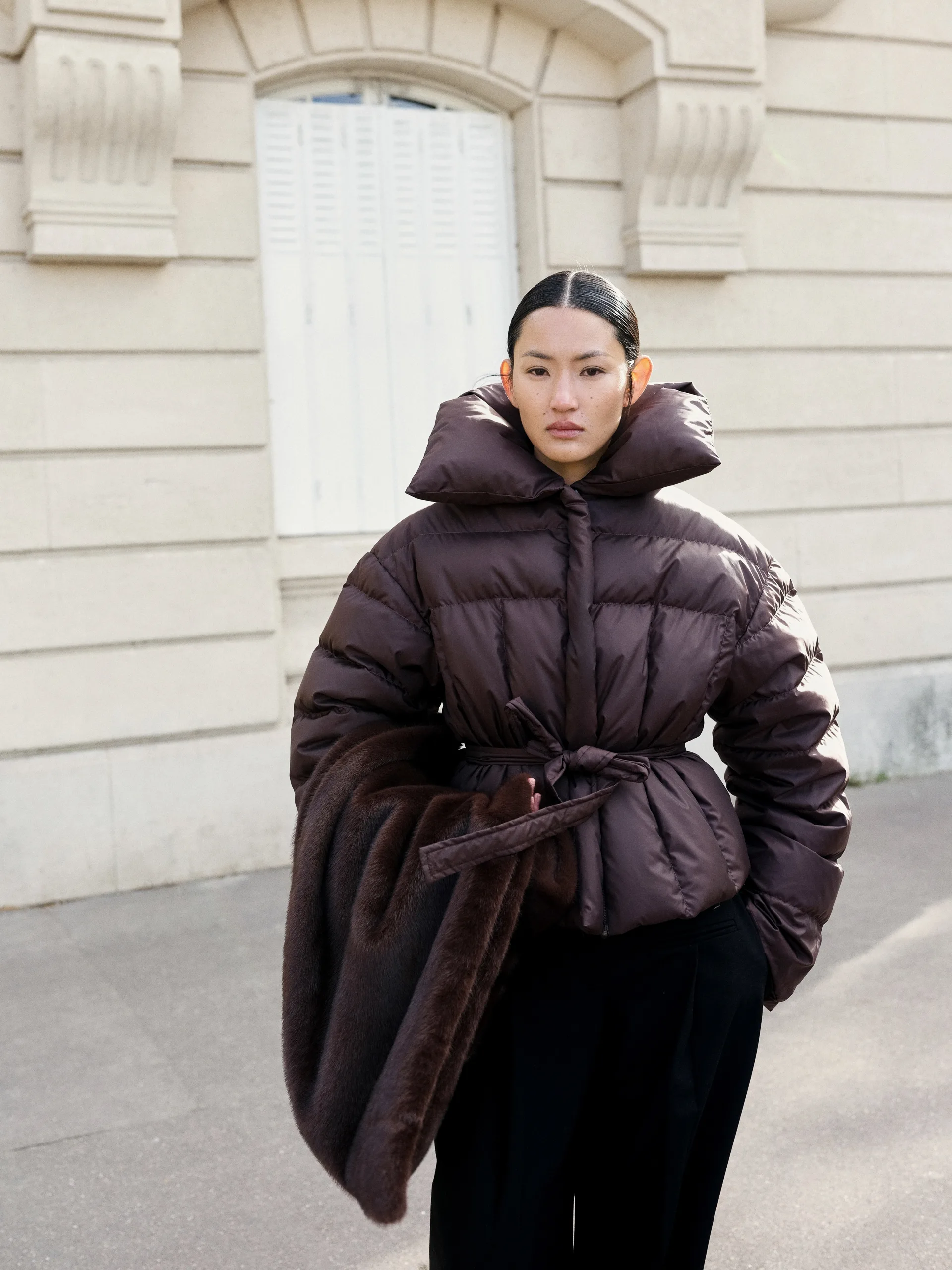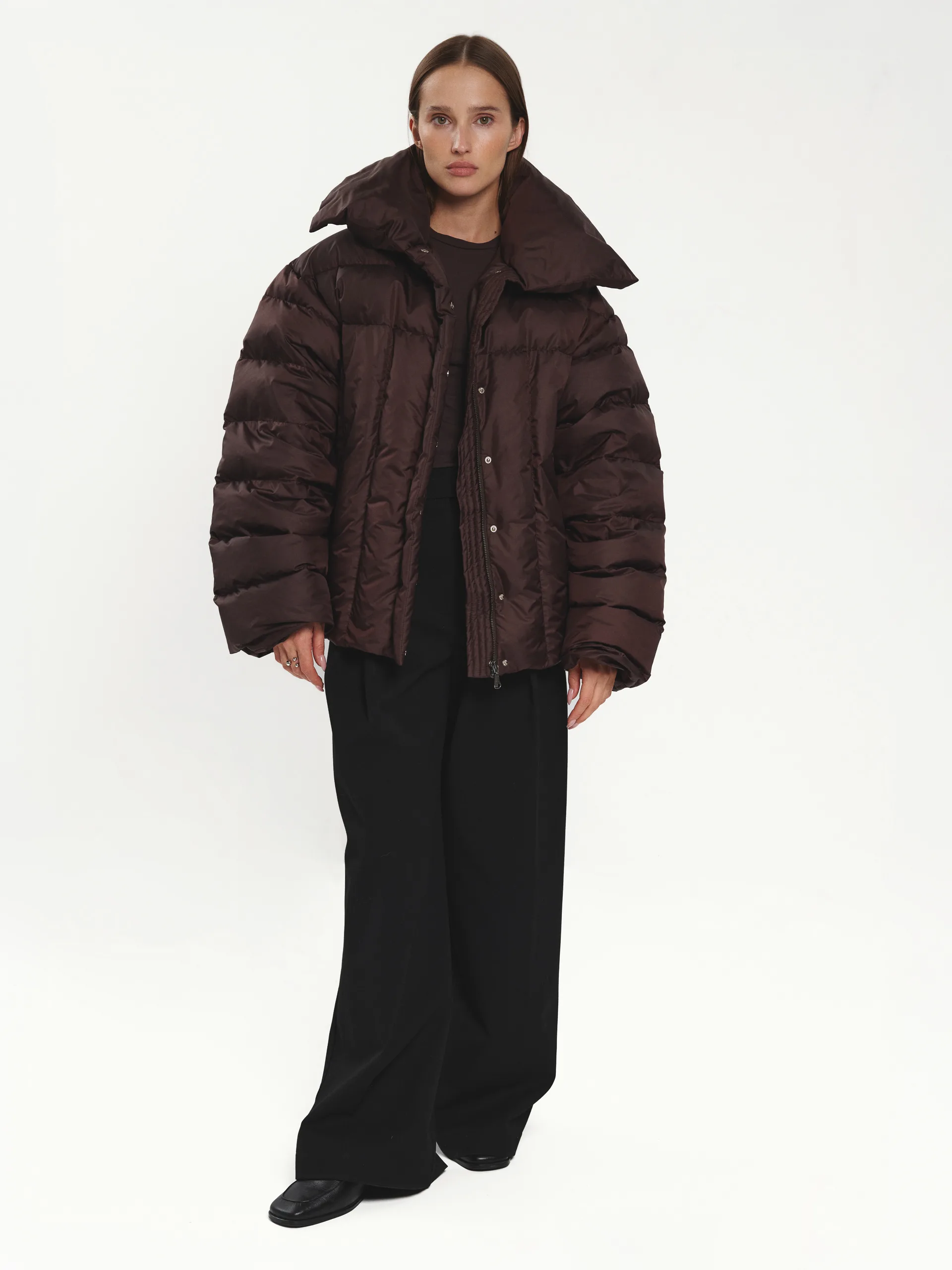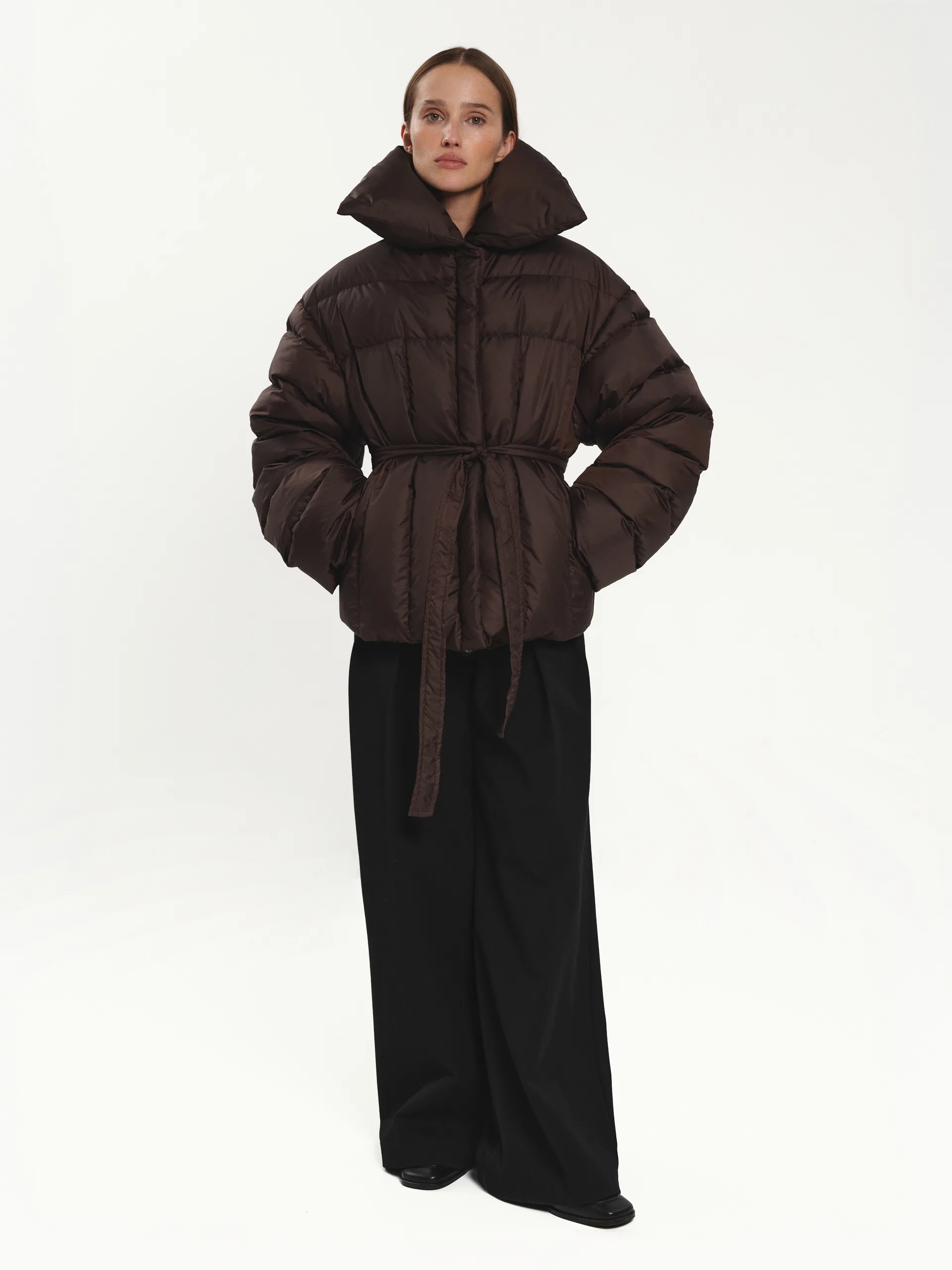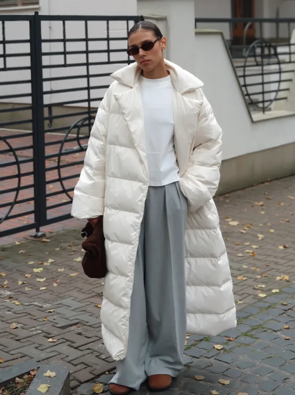 Добре поєднується з прямими чи широкими штанами, створюючи збалансований і лаконічний зимовий образ.