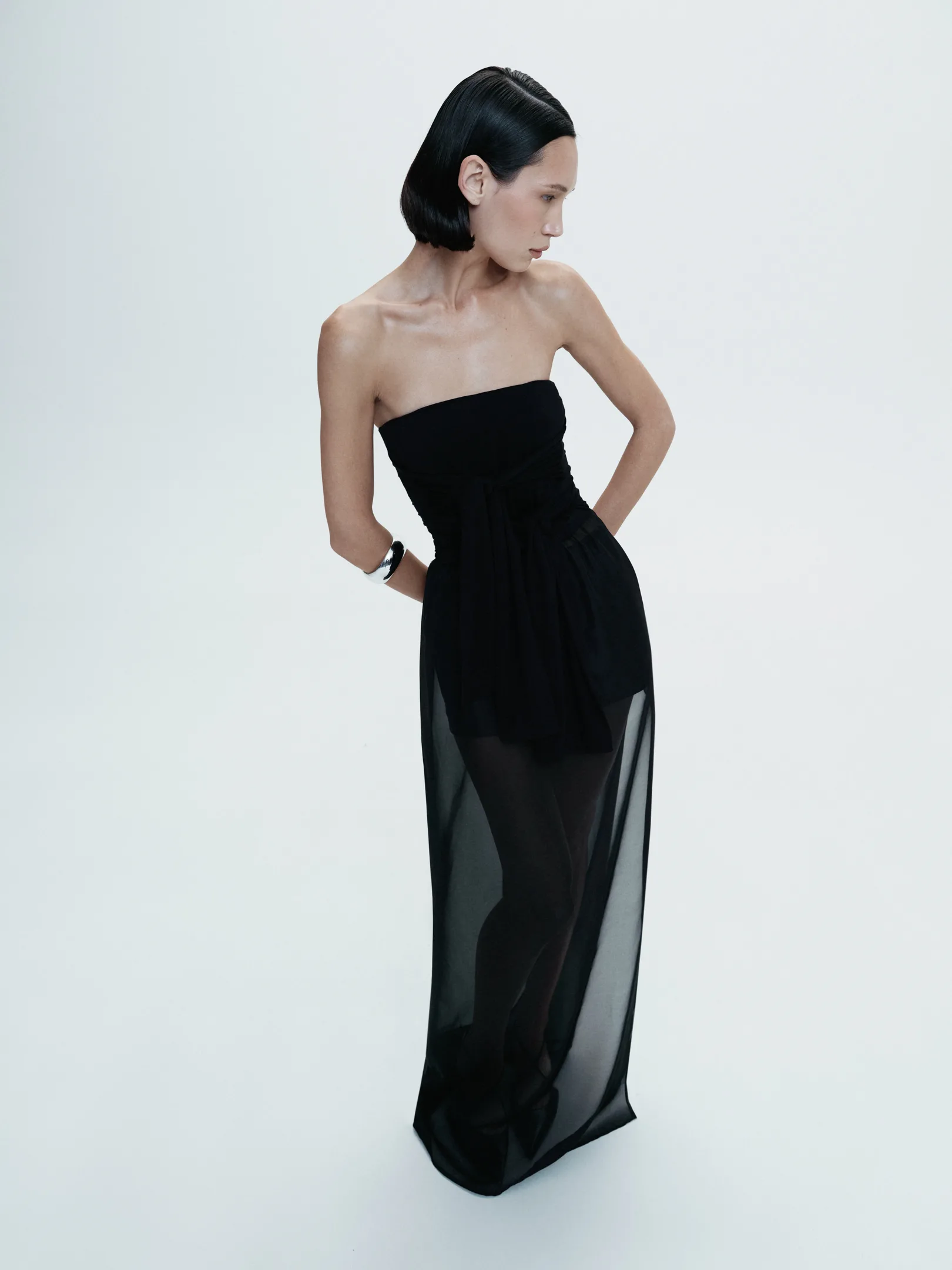 Прозора спідниця — втілення сучасної жіночності та елегантності. Виконана з легкого, напівпрозорого матеріалу. Доступна в трьох відтінках: чорному, молочному та шоколадному. Ця спідниця ідеально підходить для створення багатошарових образів, підкреслюючи текстури та граційно обрамляючи силует. Її можна легко комбінувати з різними топами, від класичних до більш сміливих, що робить її універсальним елементом гардеробу. Спідниця відмінно підійде для вечірніх виходів, додаючи нотку загадковості та витонченості.