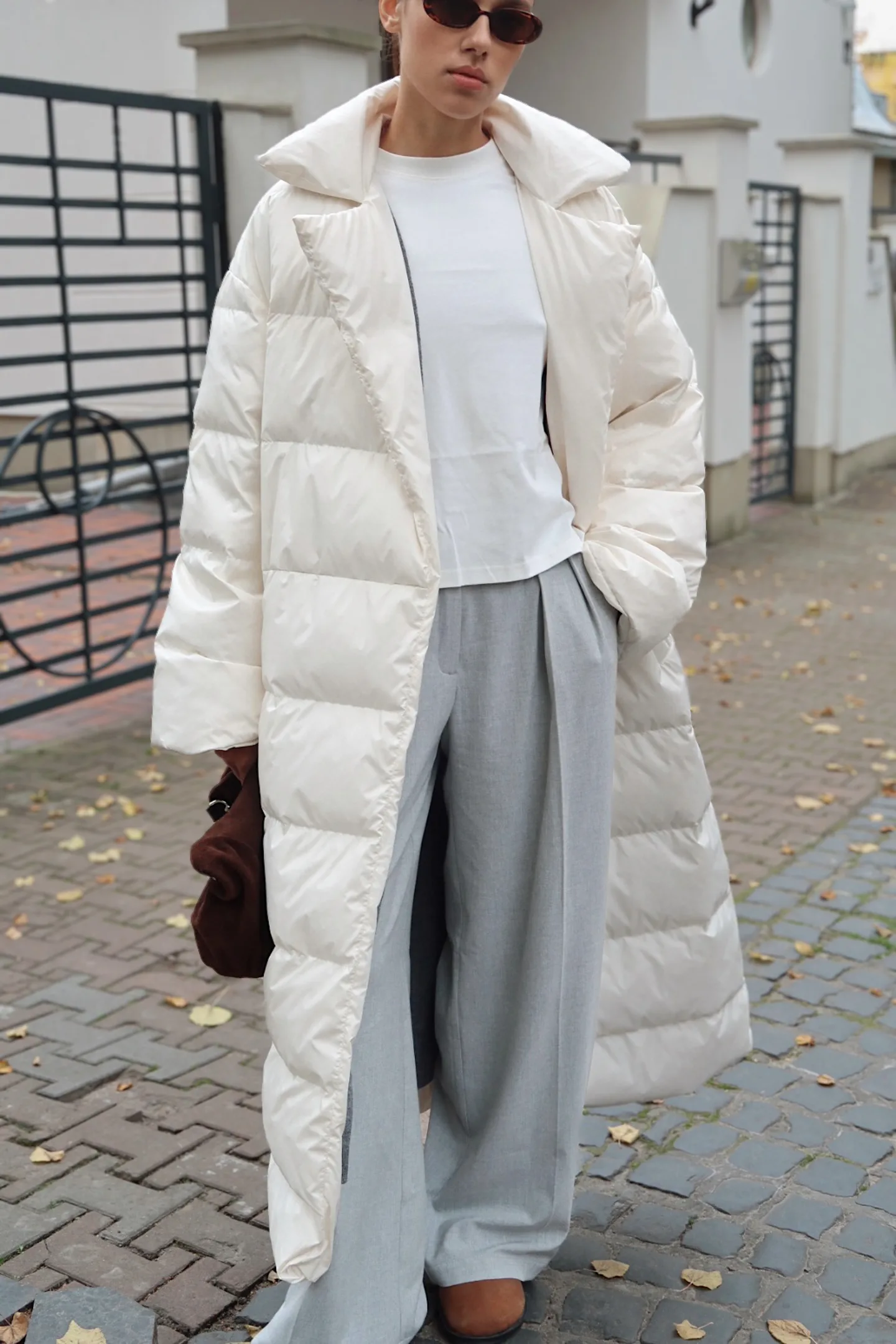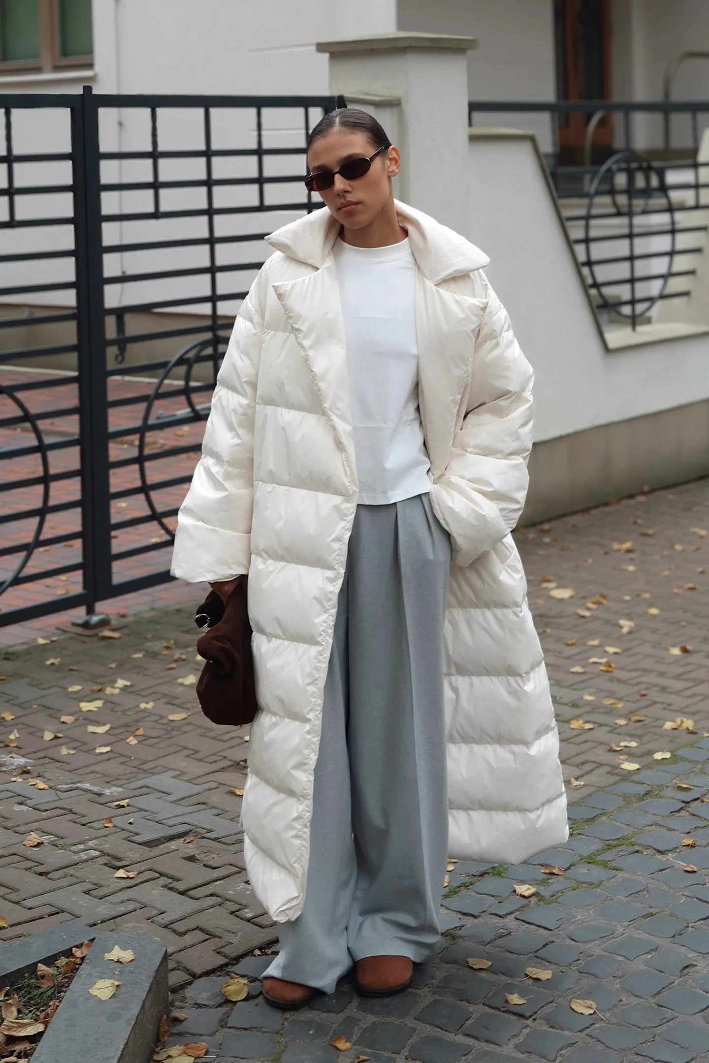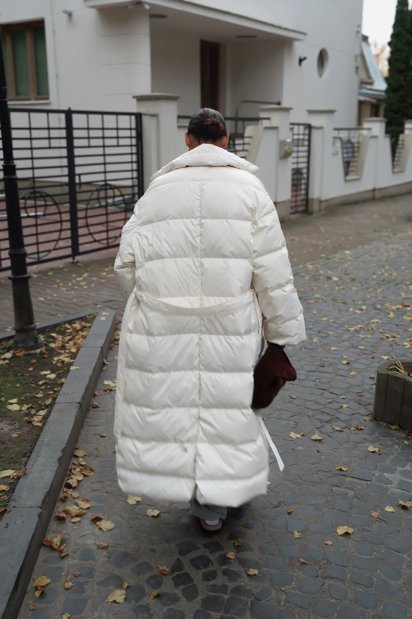 Ми довго наважувалися на створення довгого пуховика і пройшли безліч семплів, щоб досягти ідеальної моделі. Для нас важлива як естетика, так і комфорт та практичність. Тому ми обрали натуральний гусячий пух — щоб пуховик був максимально легким, теплим і зручним.