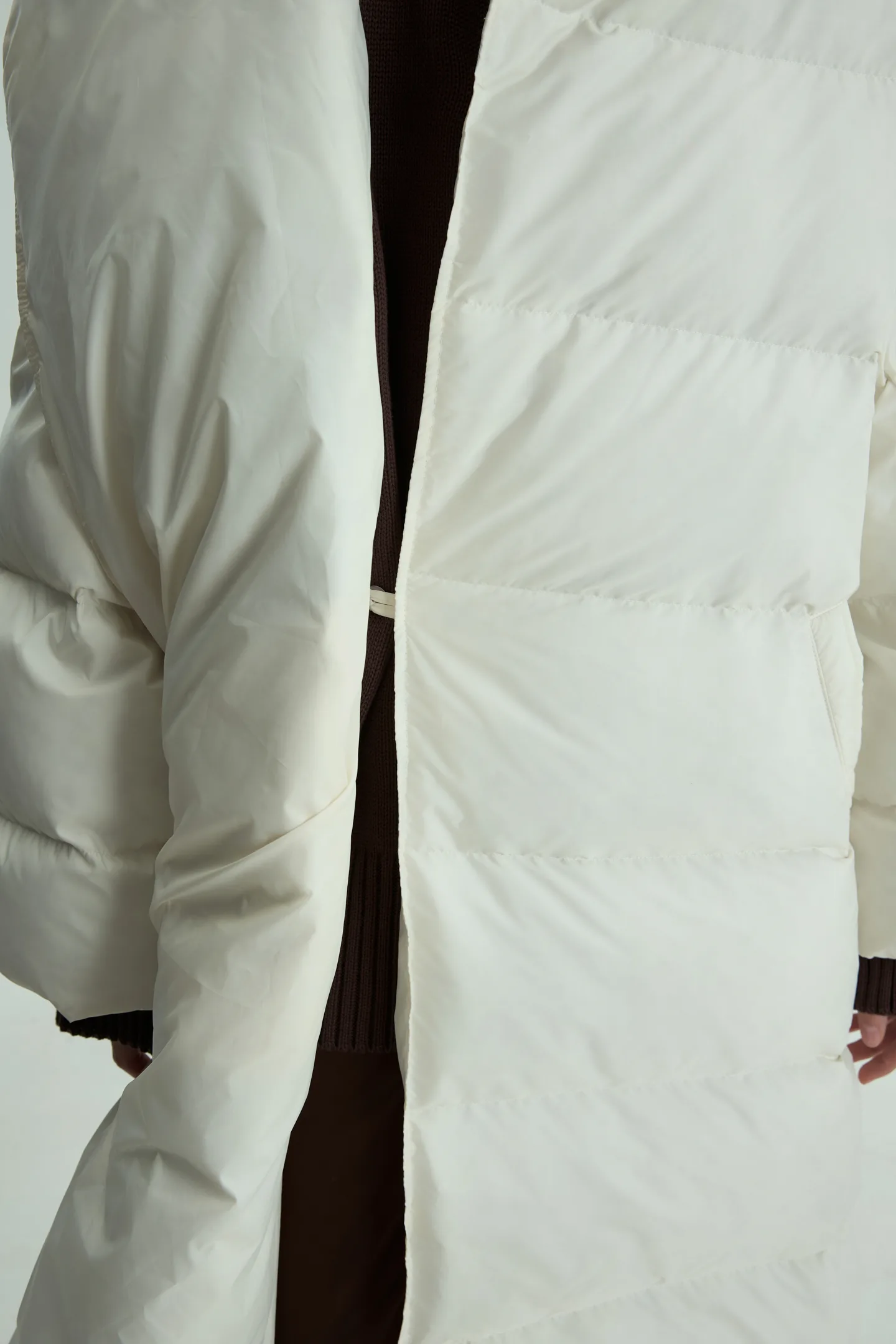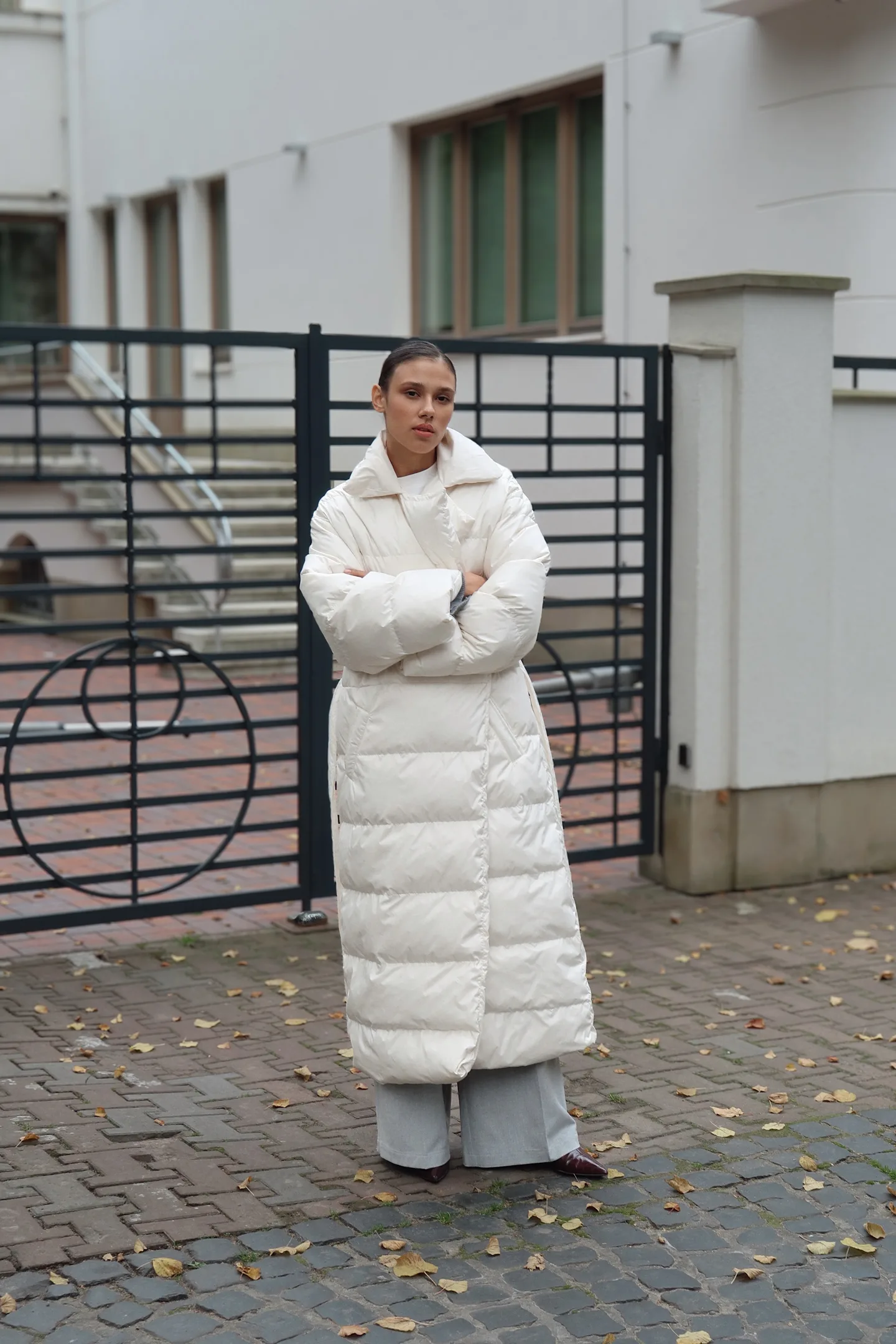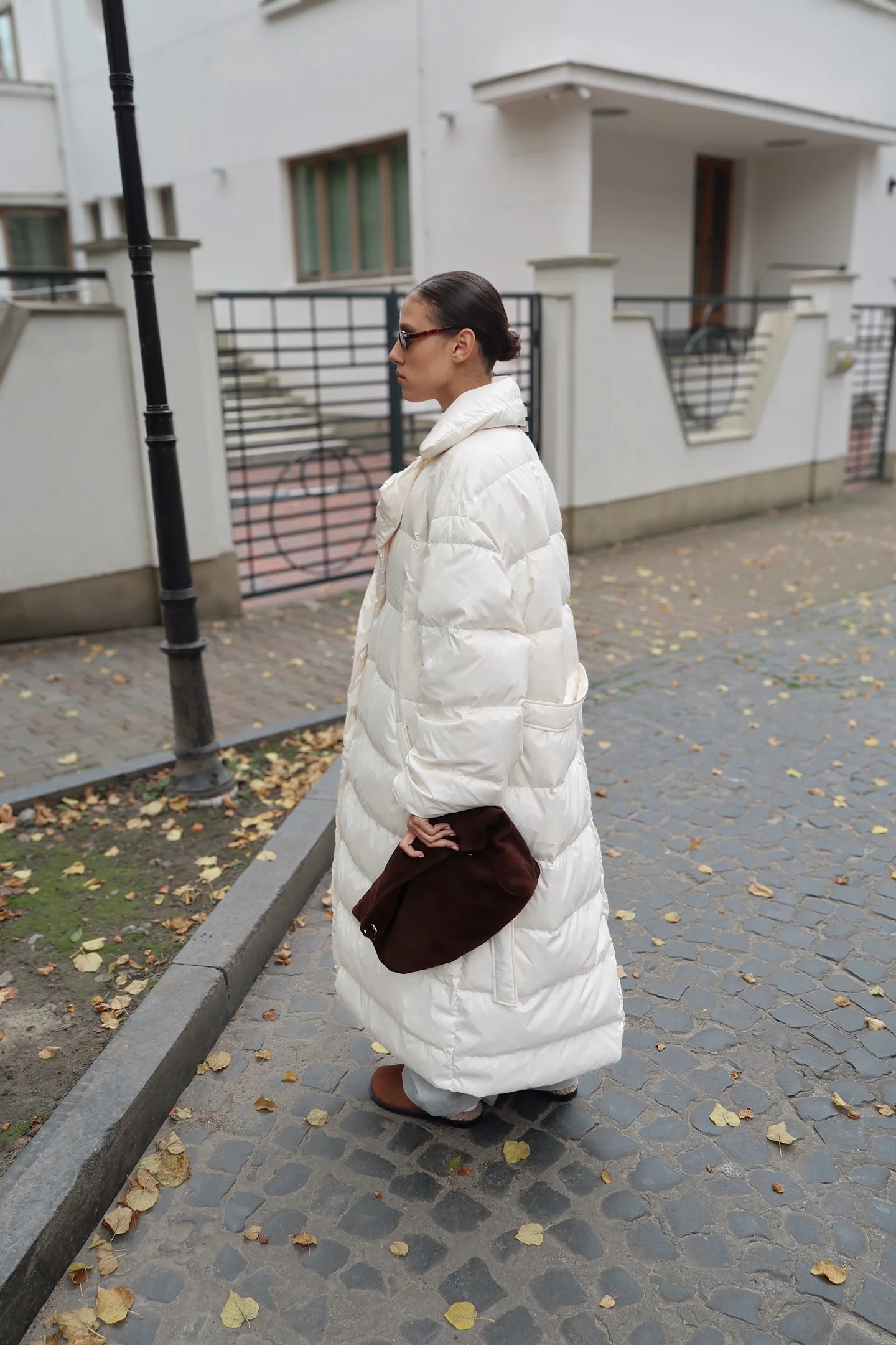 Ми довго наважувалися на створення довгого пуховика і пройшли безліч семплів, щоб досягти ідеальної моделі. Для нас важлива як естетика, так і комфорт та практичність. Тому ми обрали натуральний гусячий пух — щоб пуховик був максимально легким, теплим і зручним.